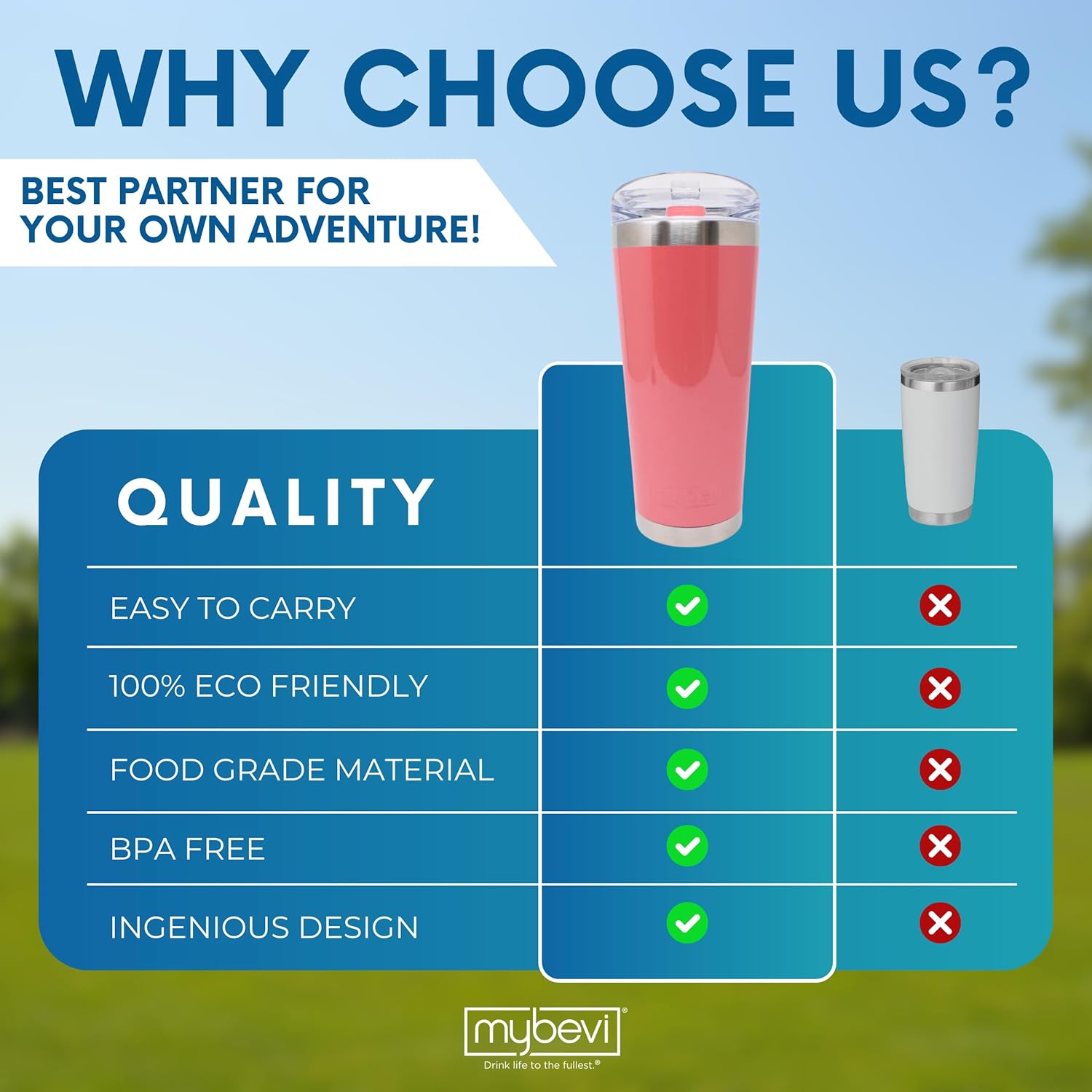 - BPA-Free and Environmentally Friendly: Protect the environment, your health, and your taste buds. Our travel mug are completely free of harmful BPAs, ensuring a pure and untainted drinking experience. Whether it's for work, leisure, or fitness, trust in MyBevi for a premium-grade, eco-conscious insulated tumblers.