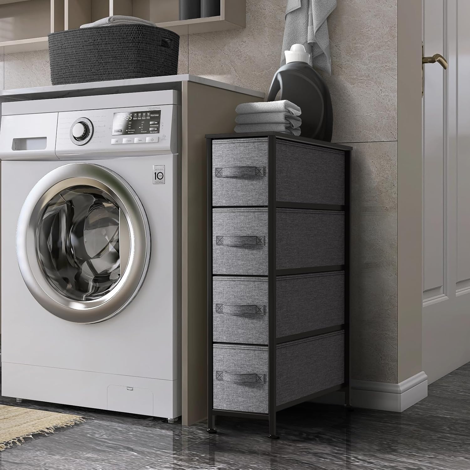 Sorbus Narrow Dresser with 4 Drawers - Vertical Slim Storage Chest of Drawers with Steel Frame, Wood Top & Easy Pull Fabric Bins for Small Spaces, Closets, Bedroom, Bathroom & Laundry (Black/Charcoal)