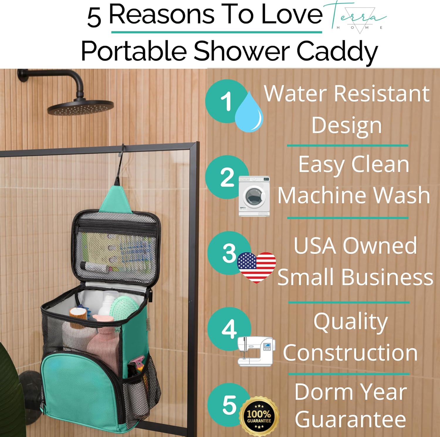 - Stylish and Durable : Crafted from strong 600D polyester with a handle and premium quality zippers, our shower caddy for girls is both stylish and durable. It holds up under stress and comes in a choice of 5 stylish colors to suit your preferences.
