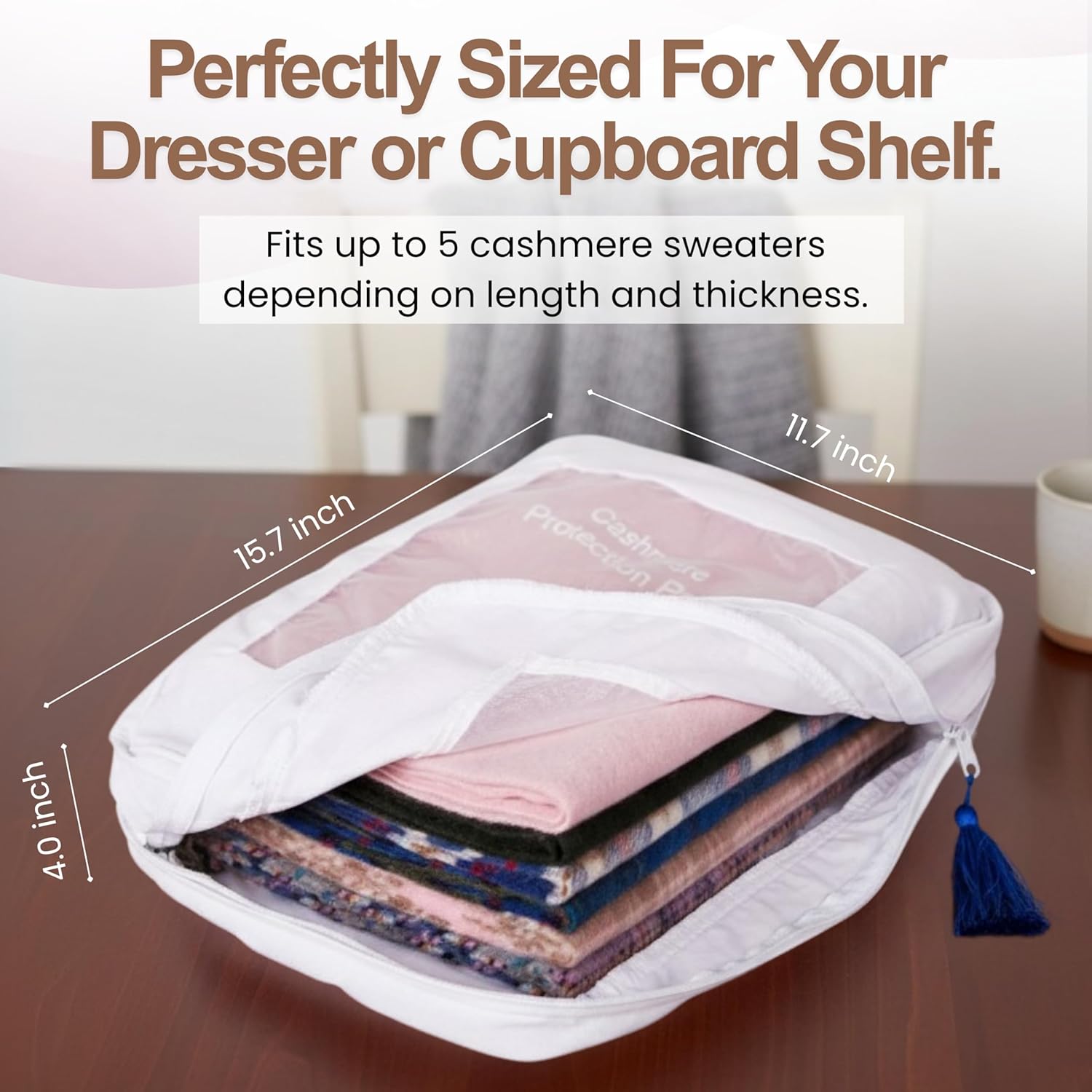 - Breathable 100% Cotton Fabric – Made from 100% cotton to let your cashmere fibers breathe while keeping them safe. This natural fabric helps prevent musty odors and keeps your cashmere fresh during storage.