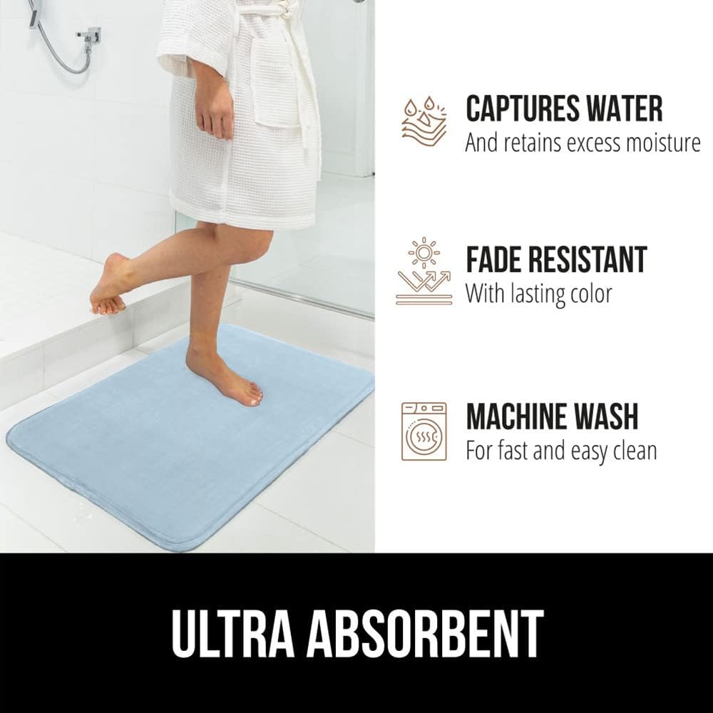 GORILLA GRIP Memory Foam Bath Rugs, Soft Absorbent Velvet Bathroom Mats, Durable Dots on Underside, Machine Washable Bathmat, Carpet Rug Room Decor for Shower Floor, 30x20 Mat, Light Blue
