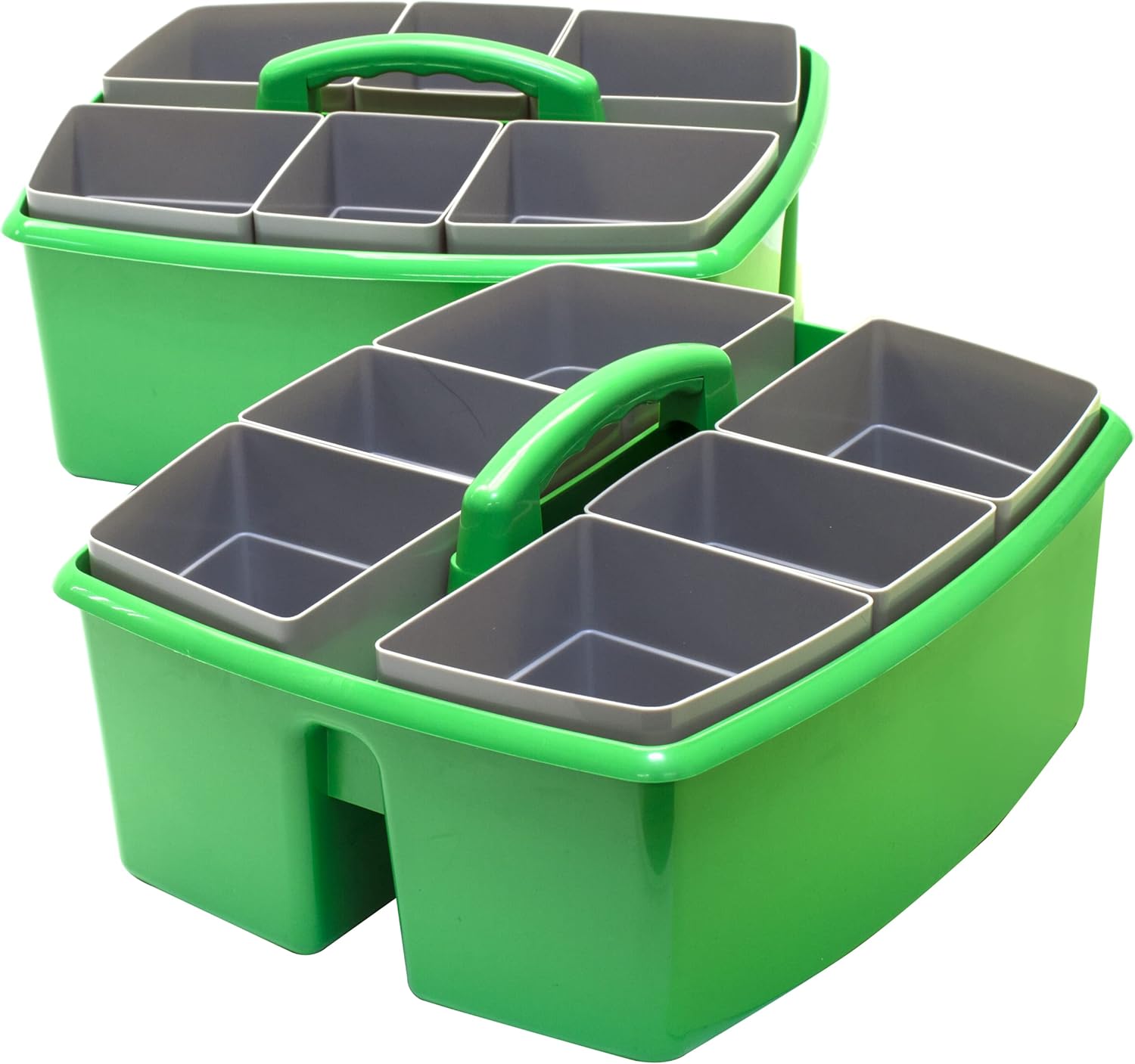 Storex Large Classroom Caddy with Cups, 13 x 11 x 6.575 Inches, Green, Case of 2 (00983U02C)