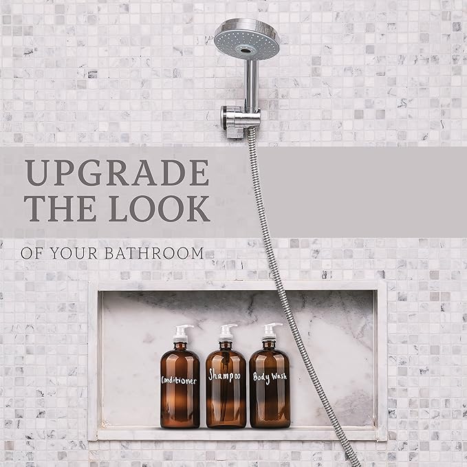 32 Ounce Glass Pump Dispenser Bottle, Large Amber Container with Pump for Shower and Bath Shampoo Soap Conditioner Lotion - 1 Liter - by Kitchentoolz