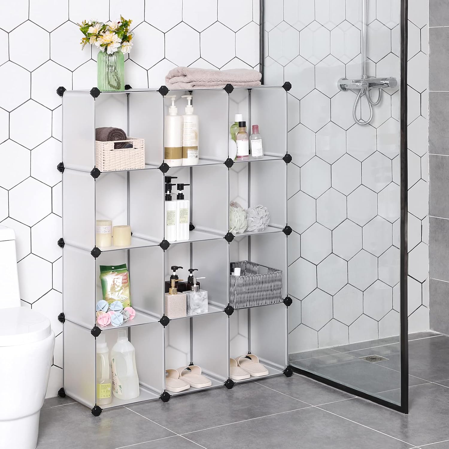 SONGMICS Cube Storage Organizer, Set of 12 Plastic Cubes, Book Shelf, Closet Organizers and Storage, Room Organization, Bedroom Living Room, 12.2 x 36.6 x 48.4 Inches, White ULPC34L