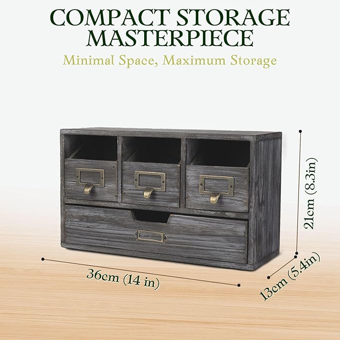 - Vintage Aesthetic - This compact wooden desk organizer with drawers aids in organization and adds a touch of rustic charm to any space, serving as both a practical item and a decorative piece