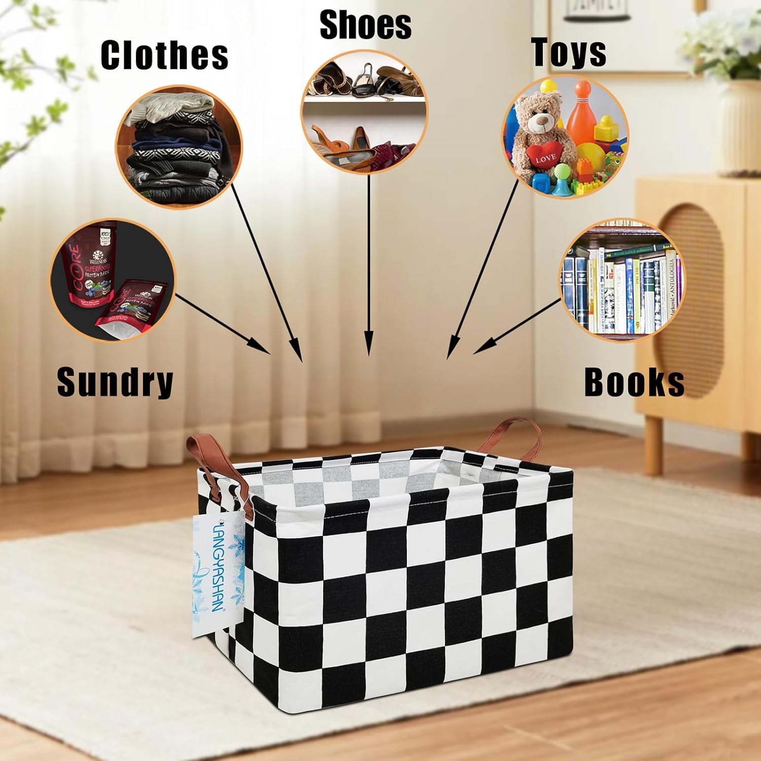 LANGYASHAN Rectangular Storage Bin Collapse Canvas Fabric Cartoon Storage Basket with Handles for Organizing Home Kitchen Boys and Girls Toys Office Closet Shelf Baskets (Rec-Racing flag)