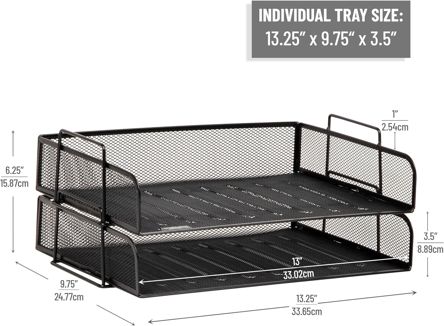 - Sleek & Functional Design: Metal mesh trays hold letter-size documents and enhance organization in any workspace