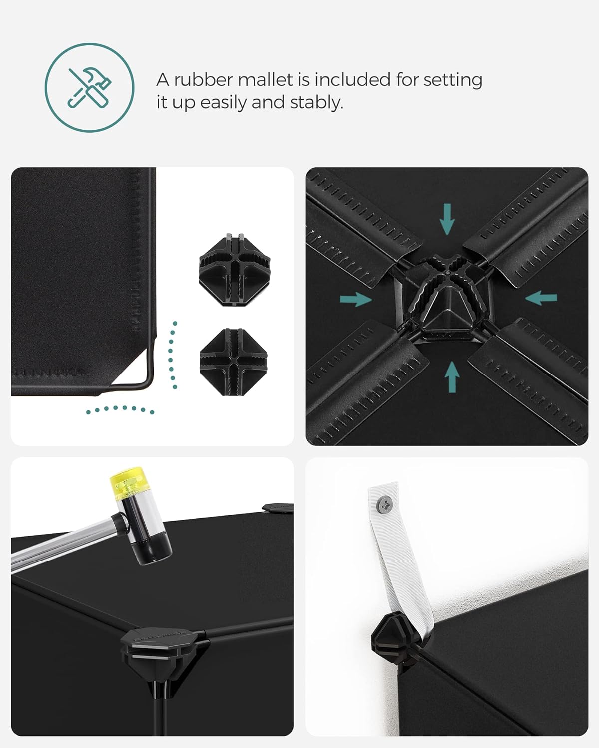 - [Use Many Ways] Store clothing, shoes, or bags in these storage cubes in your living room, entryway, bedroom, or office. Use it as a room divider, make a DIY playpen for your pet, or assemble it into different forms within the limit of the included parts