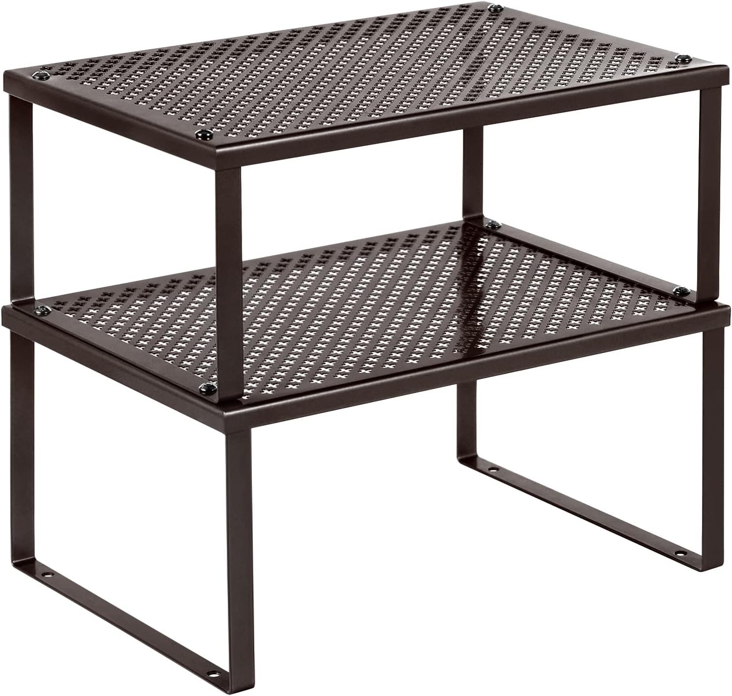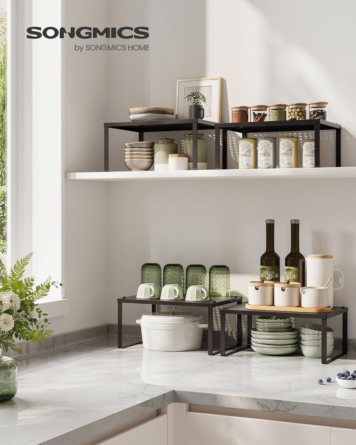 SONGMICS Spice Racks, Set of 2 Metal Cabinet Shelf Organizers, Countertop Organizers, Shelf Risers, Stackable, Expandable, Brown UKCS01BR