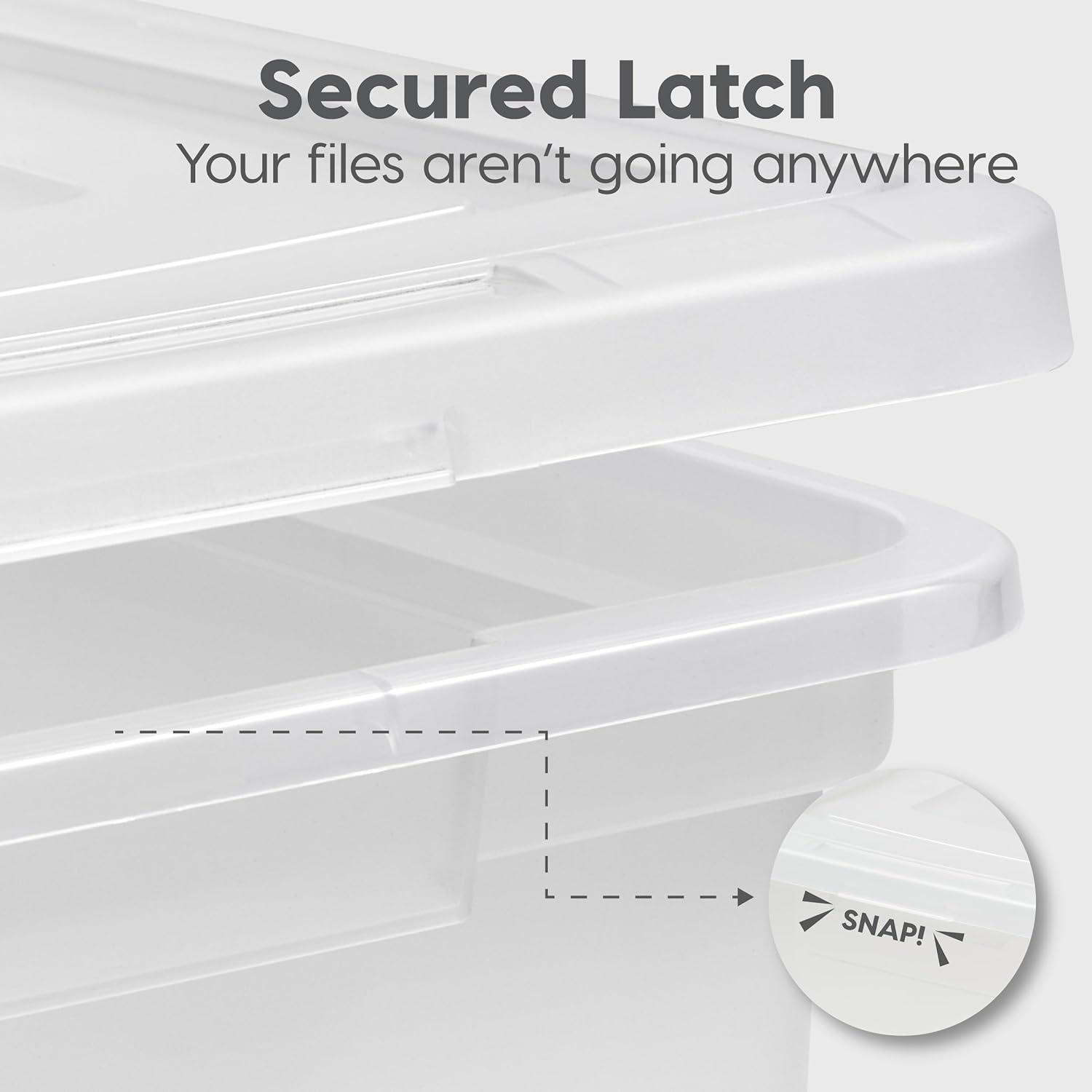 IRIS USA File Box, Plastic File Organizer with Lids for Letter/Legal File, Portable Document Box For Moving, Storage Bin with Durable and Secure Lid, Stackable Nestable BPA-Free, Pearl 35 Qt. 4 Pack