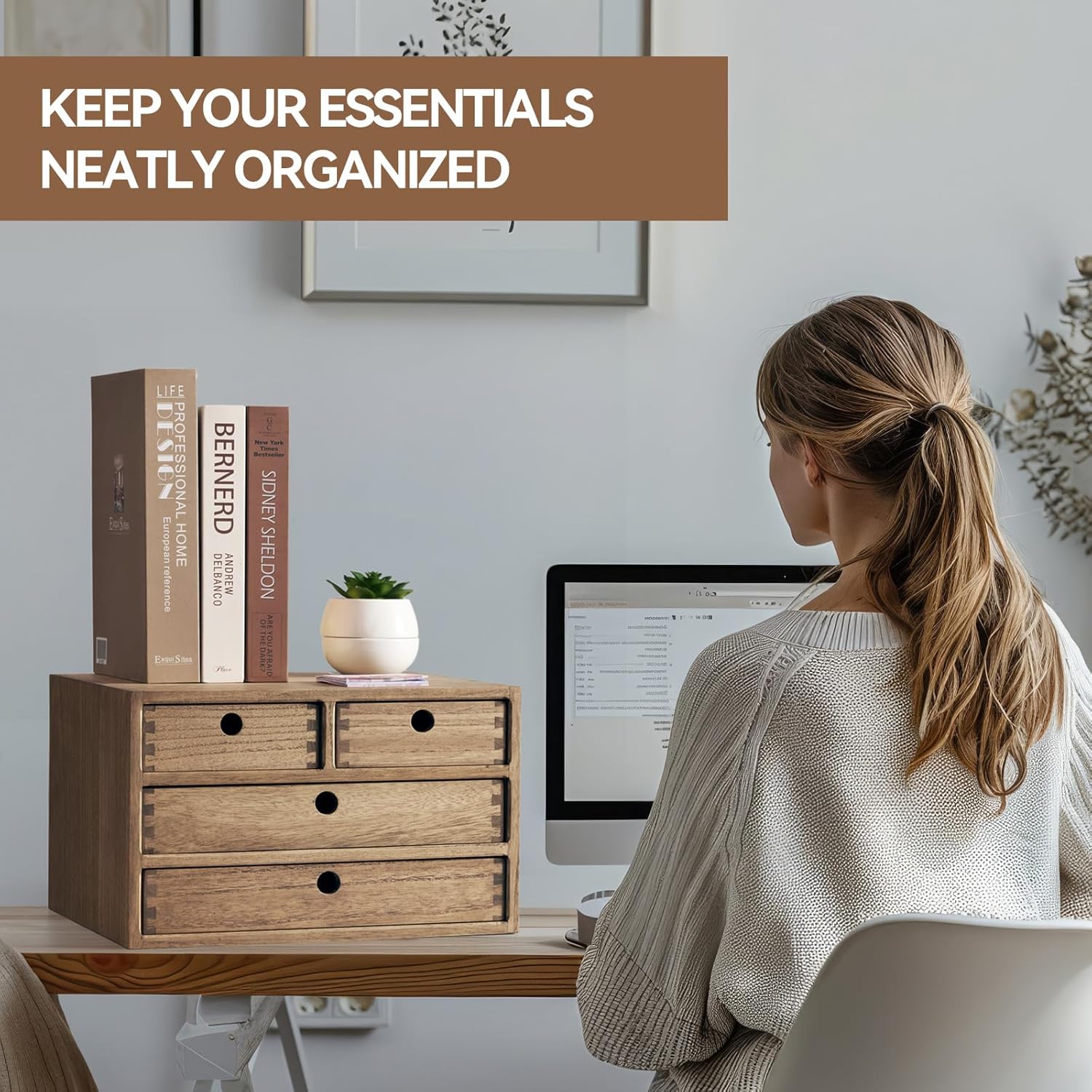 Kirigen Wood Desktop Storage Cabinet/Workspace Document Office necessity Organizer with 4 Drawers/Home,office Letter Mail Sorter with 3 levels/Hold Makeup Box (BR, 3-layer &4 drawers) Dark brown