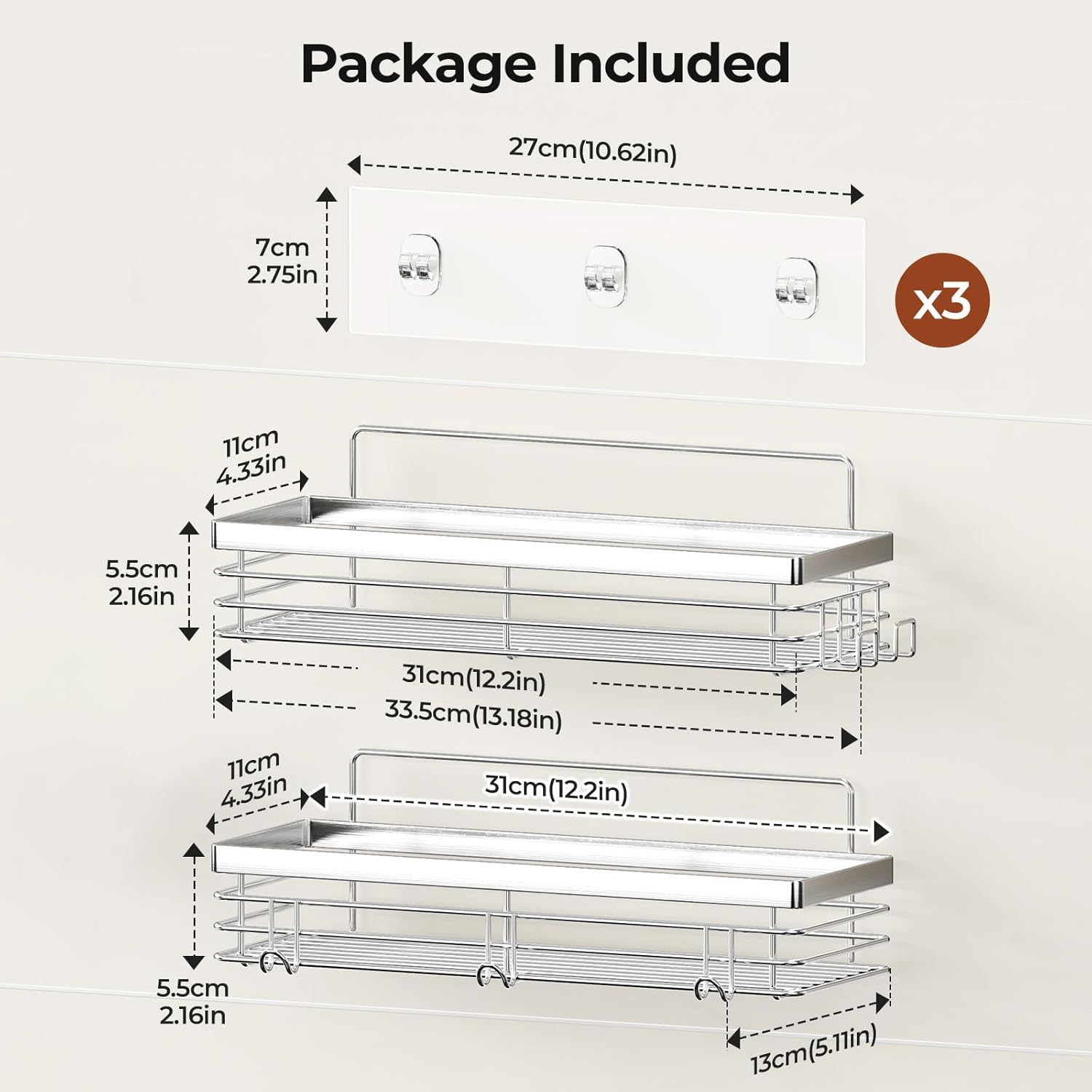 - What You Get: 2 x Shower Caddy, 3 x Adhesive, 1 x Manual, 100% satisfaction customer service!