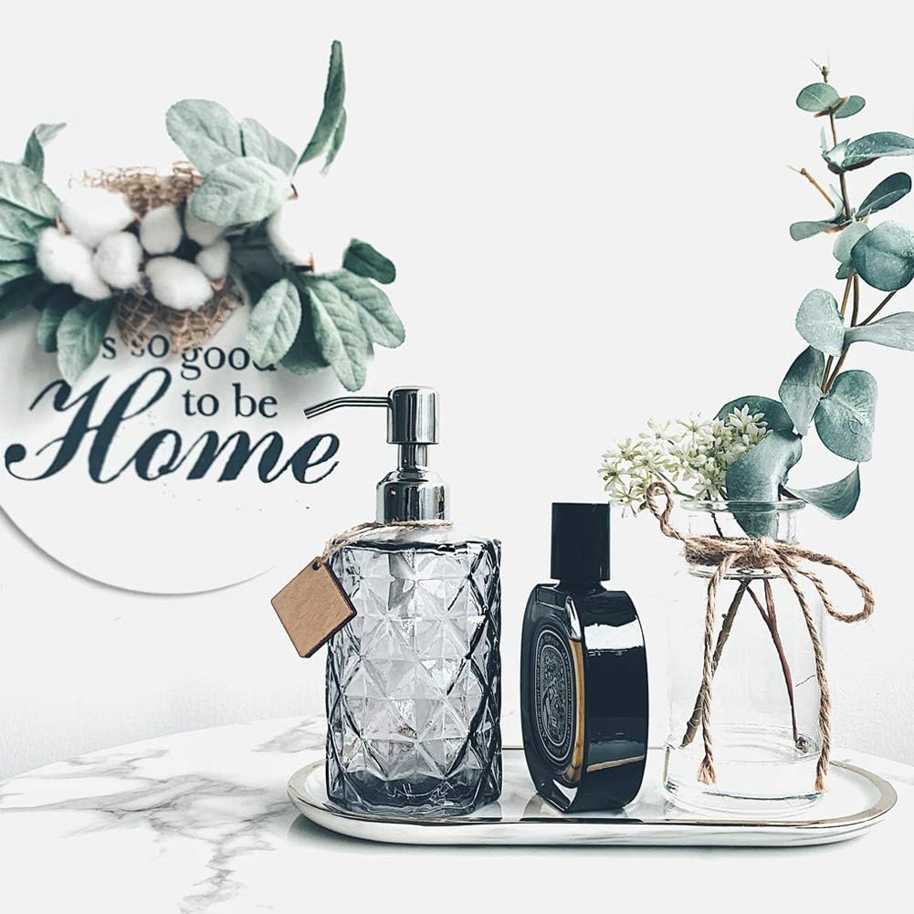 JASAI Diamond Design Glass Soap Dispenser with 304 Rust Proof Stainless Steel Soap Pump, 12 Ounce Kitchen Soap Dispenser for Bathroom, Hand Soap, Dish Soap (Grey)