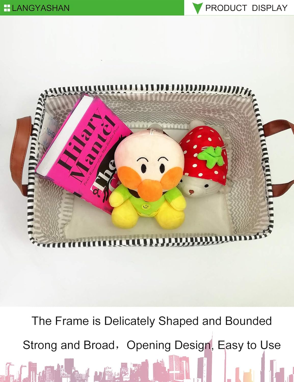 LANGYASHAN Rectangular Storage Bin Collapse Canvas Fabric Cartoon Storage Basket with Handles for Organizing Home Kitchen Boys and Girls Toys Office Closet Shelf Baskets (Rec Black line)