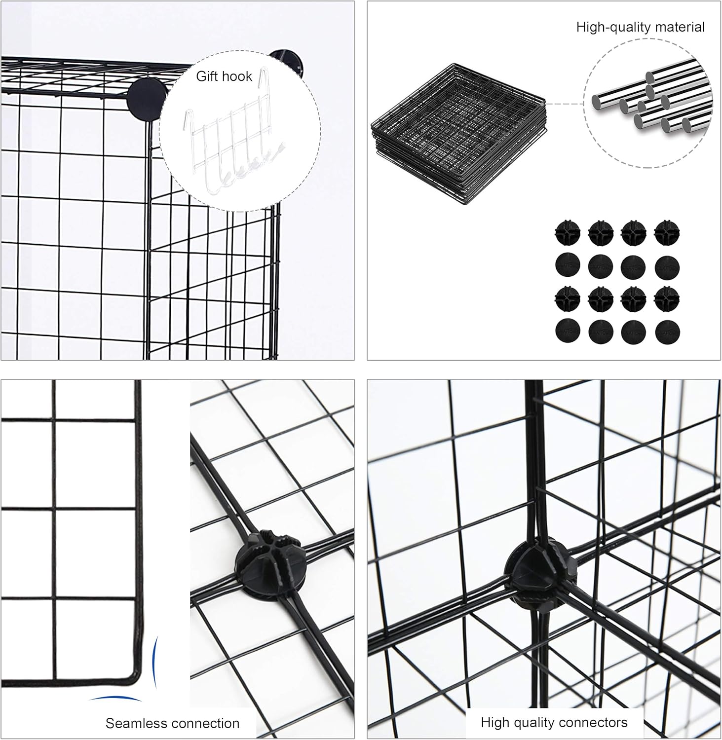 - STURDY & DURABLE: The durable ABS plastic connector secure the whole structure firmly and the metal wire panel is sturdy and durable that can hold more things,the maximum load capacity of each cube is up to 22 pounds