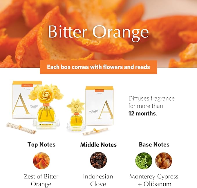 - Long Lasting: Unlike many scented oil flower and reed diffuser sets with high alcohol content that evaporates faster, Agraria’s AirEssence and PetiteEssence oil reed diffuser set is made with high quality perfume-grade oil fragrances that last 6-12 months