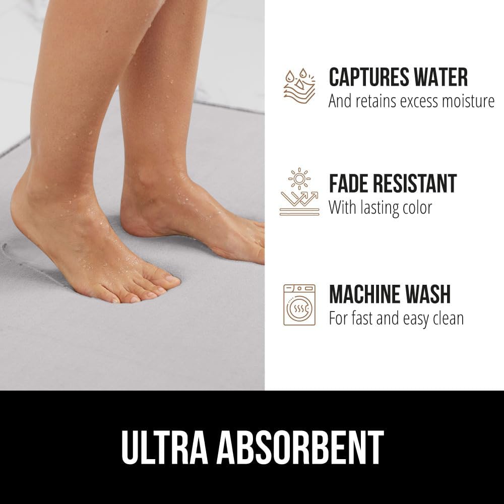 GORILLA GRIP Thick Memory Foam Toilet Rug for Bathroom, U Shaped Washable, Soft Absorbent Velvet Topside Floor Mats, Machine Wash, Cushioned Luxury Rugs for Bath Room, 22.5 x 19.5 Light Gray