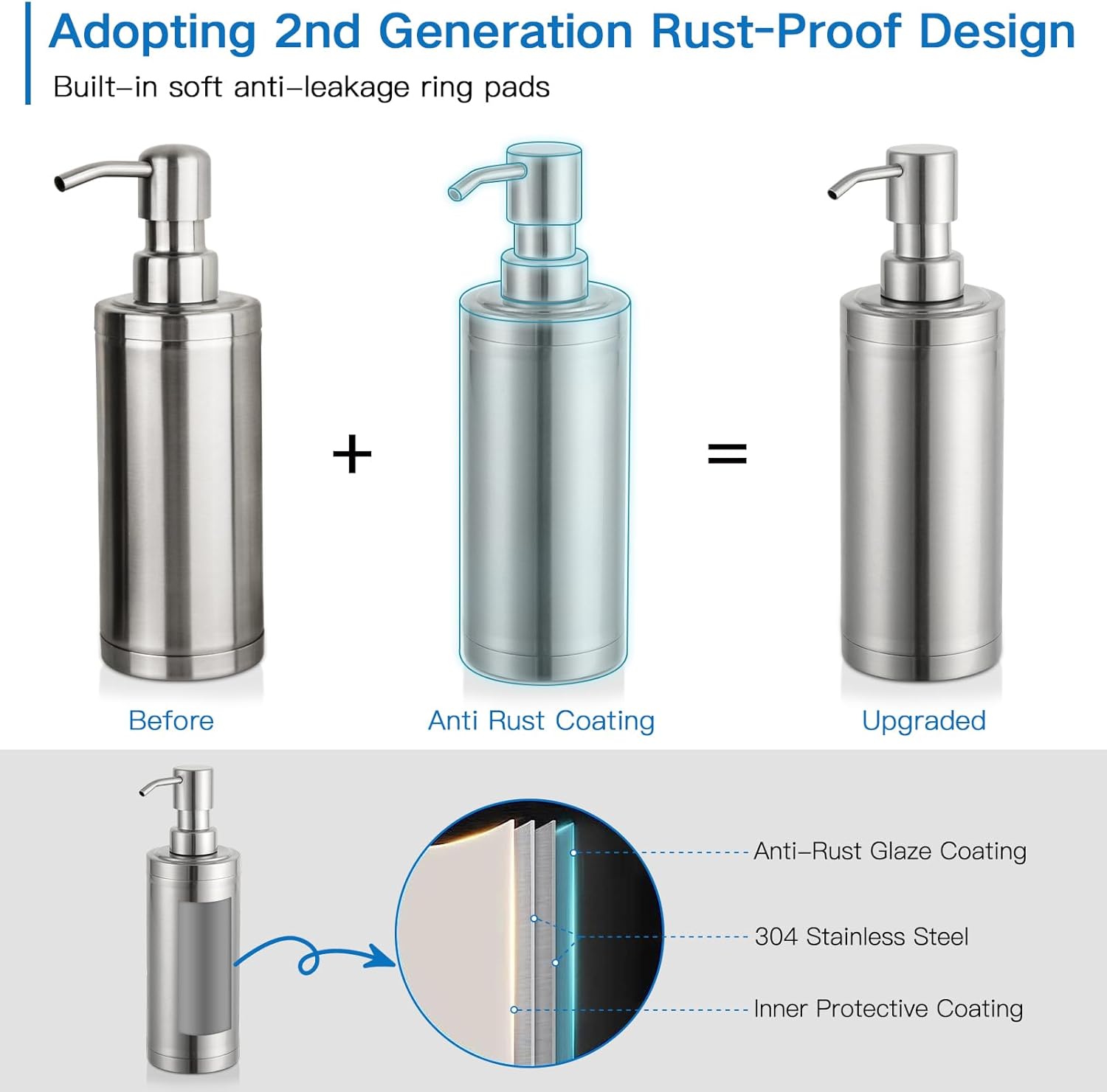 - Quality Material: This soap dispenser is all made of 304 stainless steel for durability and reliability