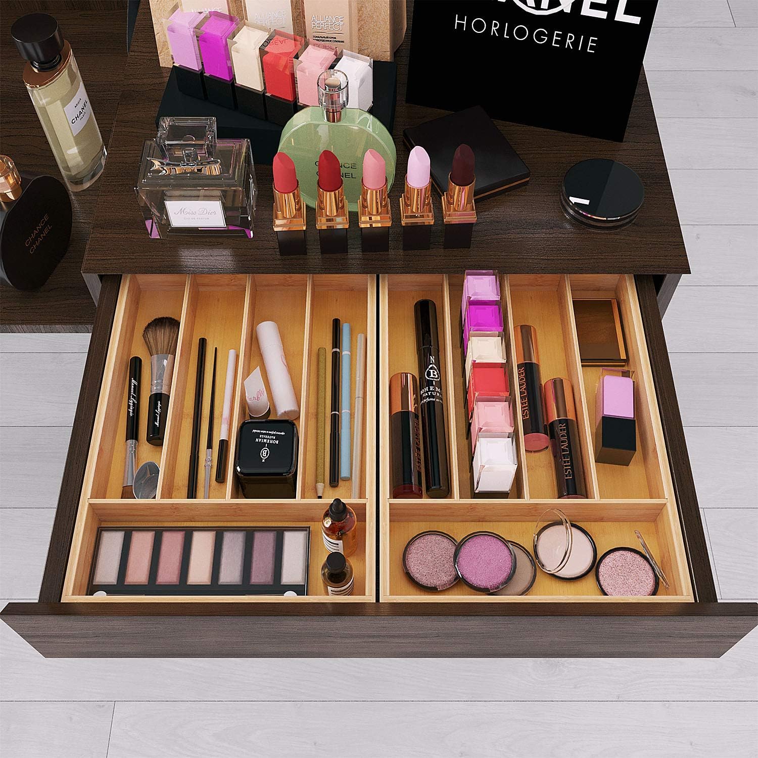 - MULTI-PURPOSE CONVENIENCE: The bamboo drawer organizer also works well in other areas of your home, such as keeping office or art supplies neat and orderly; Of course it can be made a good use in the bedroom or bathroom with holding personal items like hair ties, jewelry and other accessories
