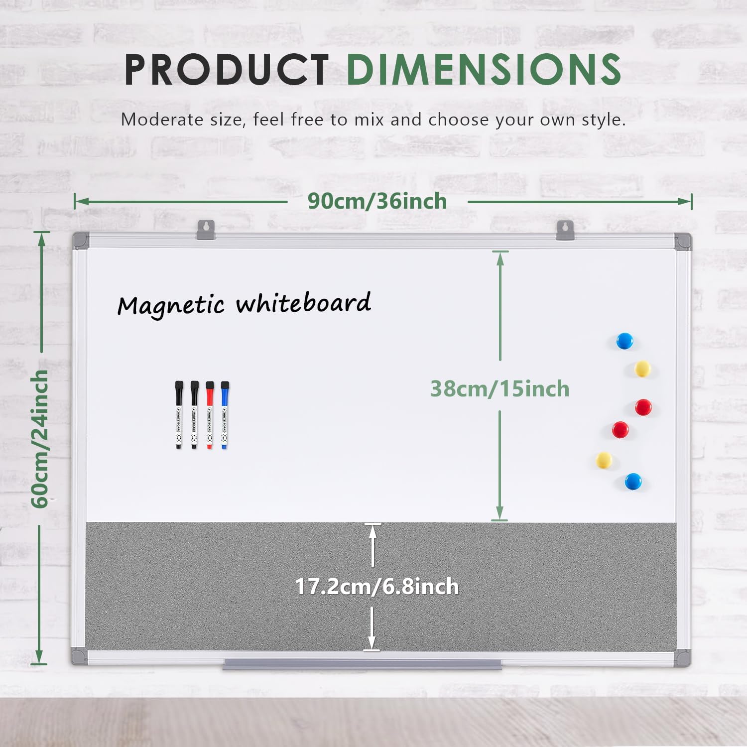 Combo Dry Erase Bulletin Board Wall Mounted Whiteboard and Pin Board Vision Board for Home Kitchen School Office College,Whiteboard & Felt Gray,36x24inches