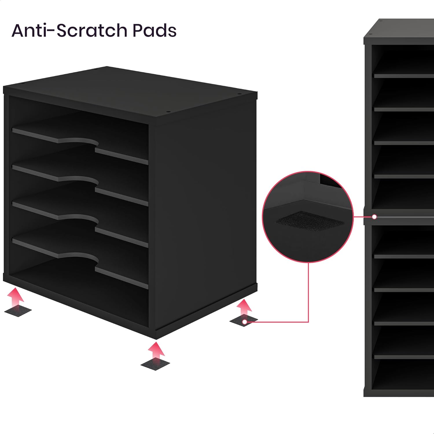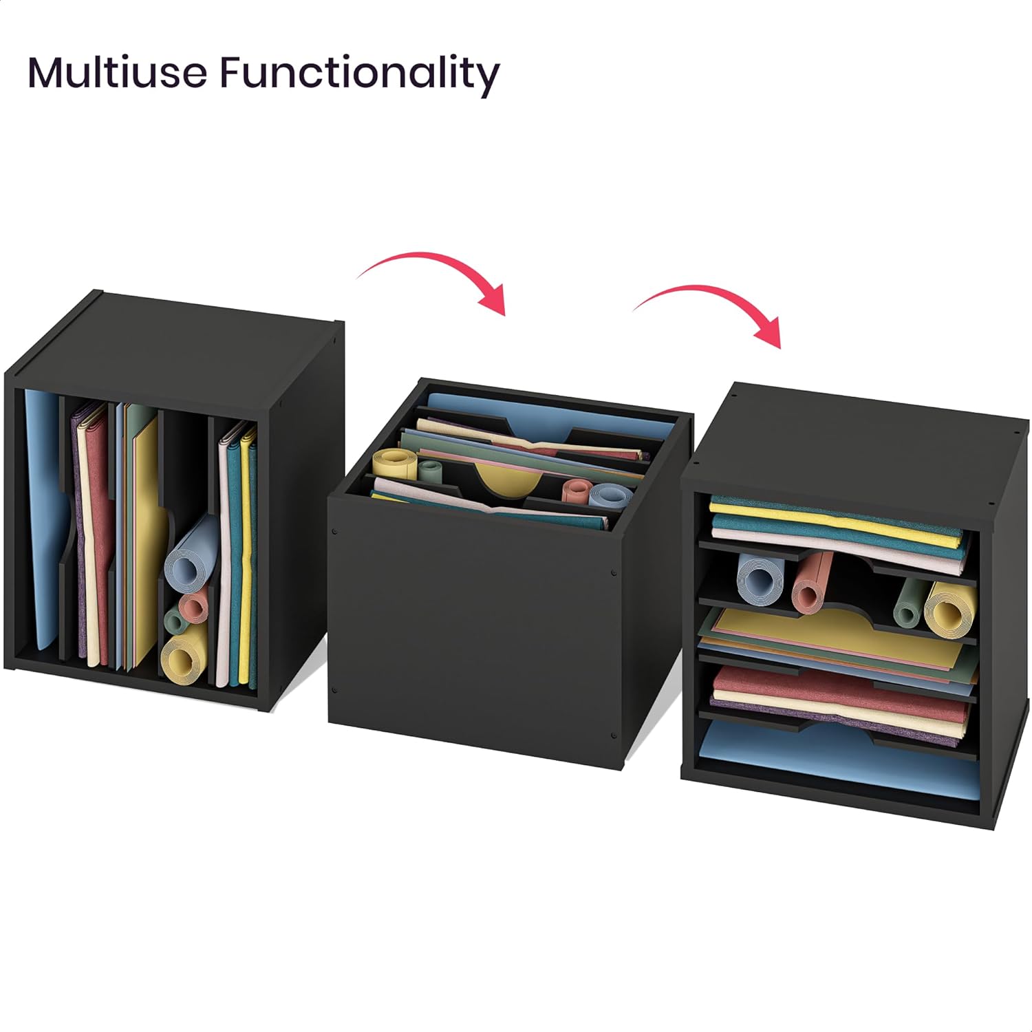 - ORGANIZER: This black paper organizer features 5 storage spaces, so it has ample room for sorting mail and storing books, folders, magazines, craft papers, files, and more