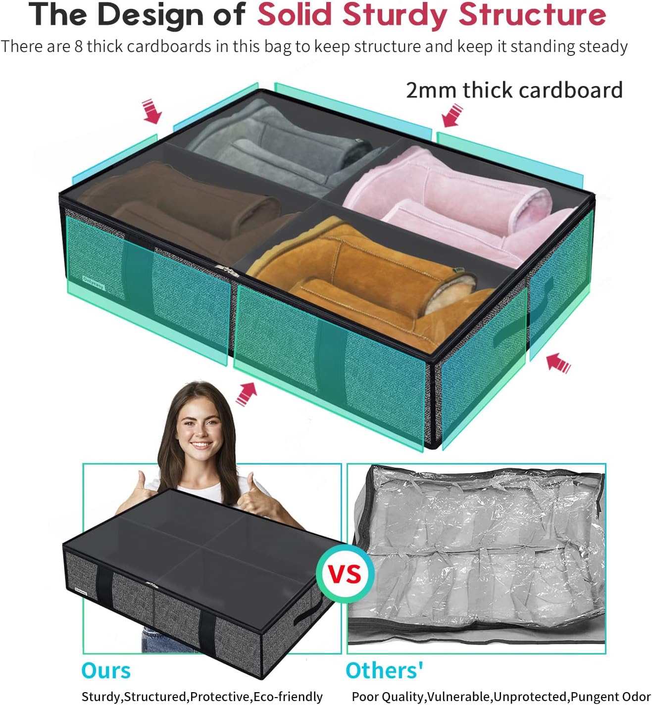 - WITH STURDY HANDLES - 4 reinforced handles on front and sides allow you to pull them out from under the bed in any direction without worry. And feature good stitching.