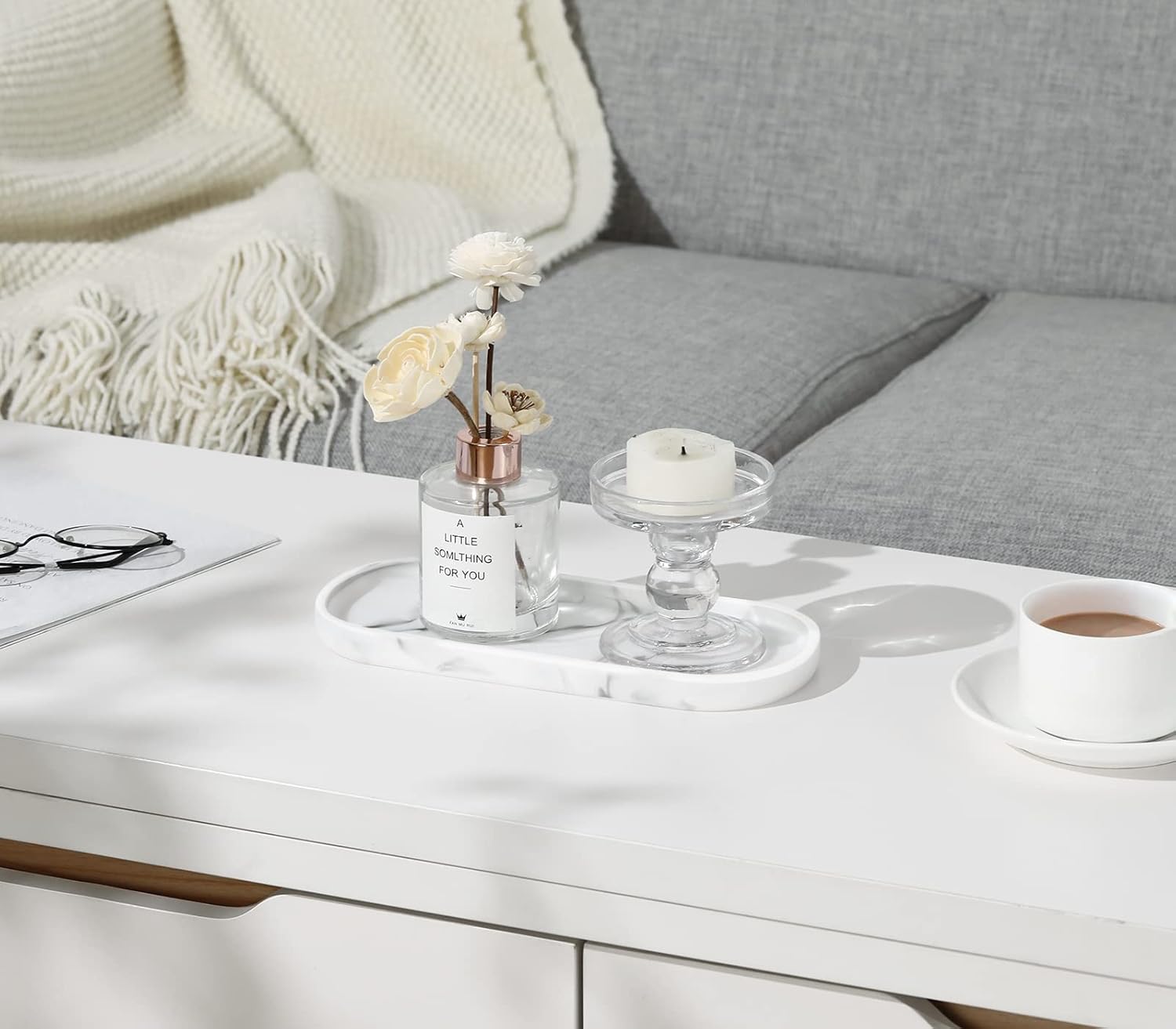 Luxspire Bathroom Vanity Tray, Oval Soap Dispenser Tray, 10" Marble Kitchen Counter Trays, Resin Bathroom Tray for Counter, Toilet Tank Tray, Trinket Tray for Perfume Jewelry, Small, Marble White