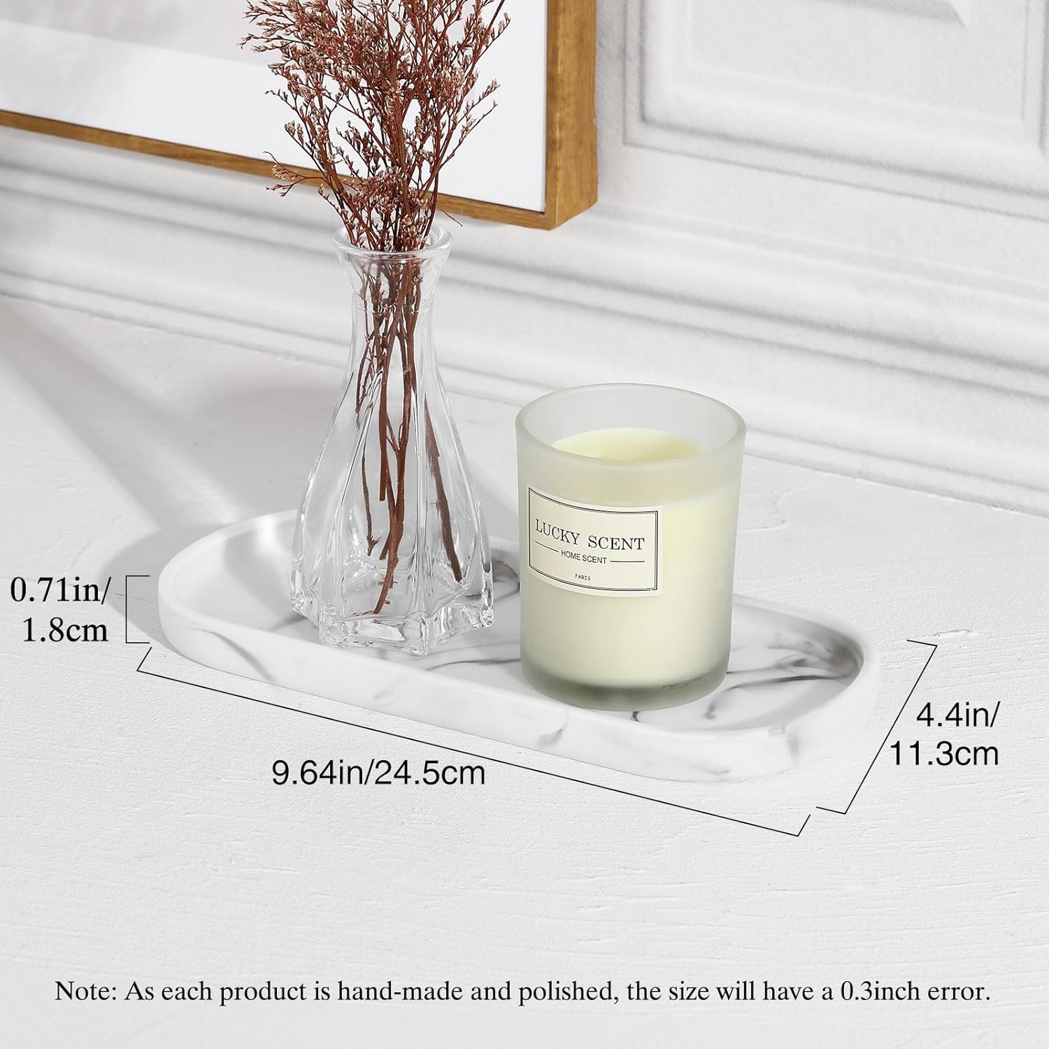 - 【Size】: 9.64" X 4.44" X 0.7" (24.5 X 11.3 X 1.8cm) Tips: Each marble oval tray is 100% handmade, may have a size discrepancy of up to 0.3“, and the pattern on the perfume tray you bought will be different from the picture, each tray is unique.