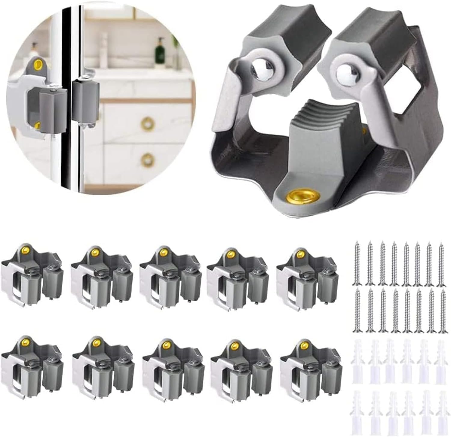3-H Mop and Broom Holder Big Size Hanging 1 KG Extra,10 Pack Broom Hanger Wall Mount for Hanging and Organizing Shove Rake Yard Tools in Kitchen Shed Laundry Room Bathroom Garden(grey)