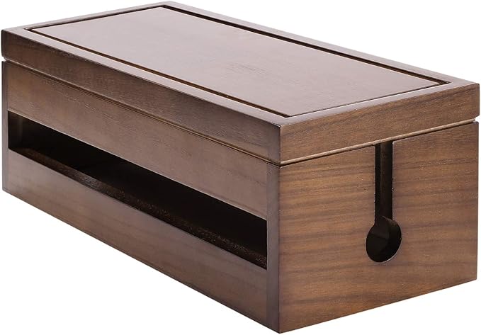 Changsuo Cable Management Box Wooden Cord Organizer Box for Extension Cord Power Stripe Surge Protector Wire Management Concealer Cover Hider for Desktop Home Office Kitchen (Brown)