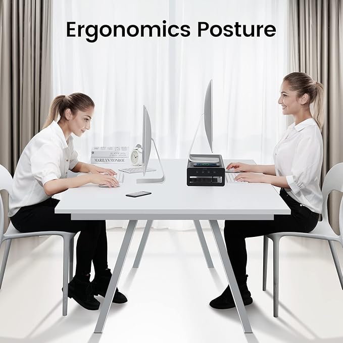 - Ergonomic monitor riser: As a health-centered monitor stand, it combines praticality and comfort together, raising your monitor to proper height so that the pressure on your neck and waist will be released and your posture will be corrected ,bringing more comfort as well as extra space for your desktop.