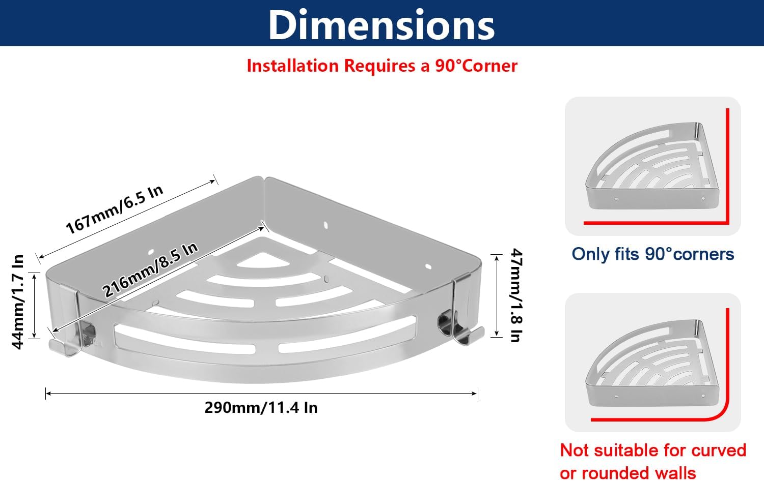 - SAVE SPACE: The corner design makes your bathroom looking more tidy and clean; It provides enough space to hold your bathroom products; Extra 2 hooks are suitable for hanging robe towels; And it’s also suitable for kitchen and bedroom