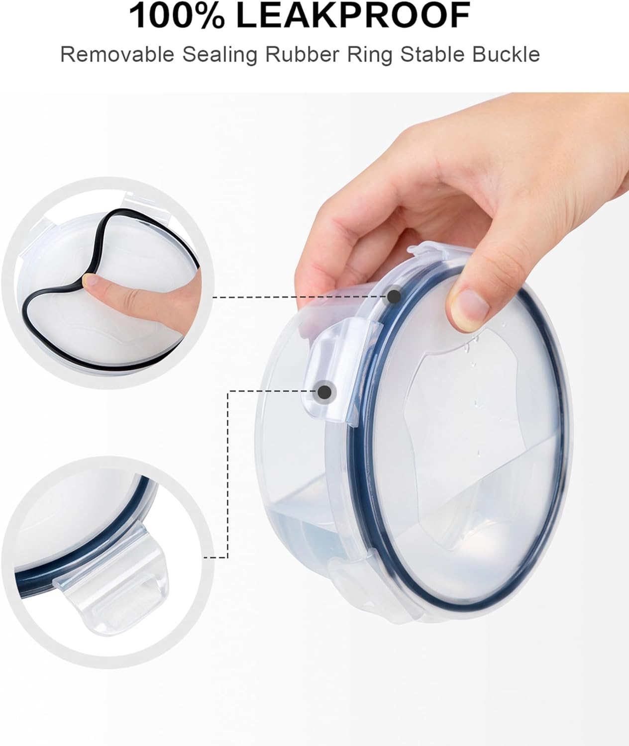 - ✅ Airtight, Leak Proof Lids – Each of our plastic containers comes with matching easy snap lock tight lids to help ensure freshness and prevent odors or messes from leaking out.