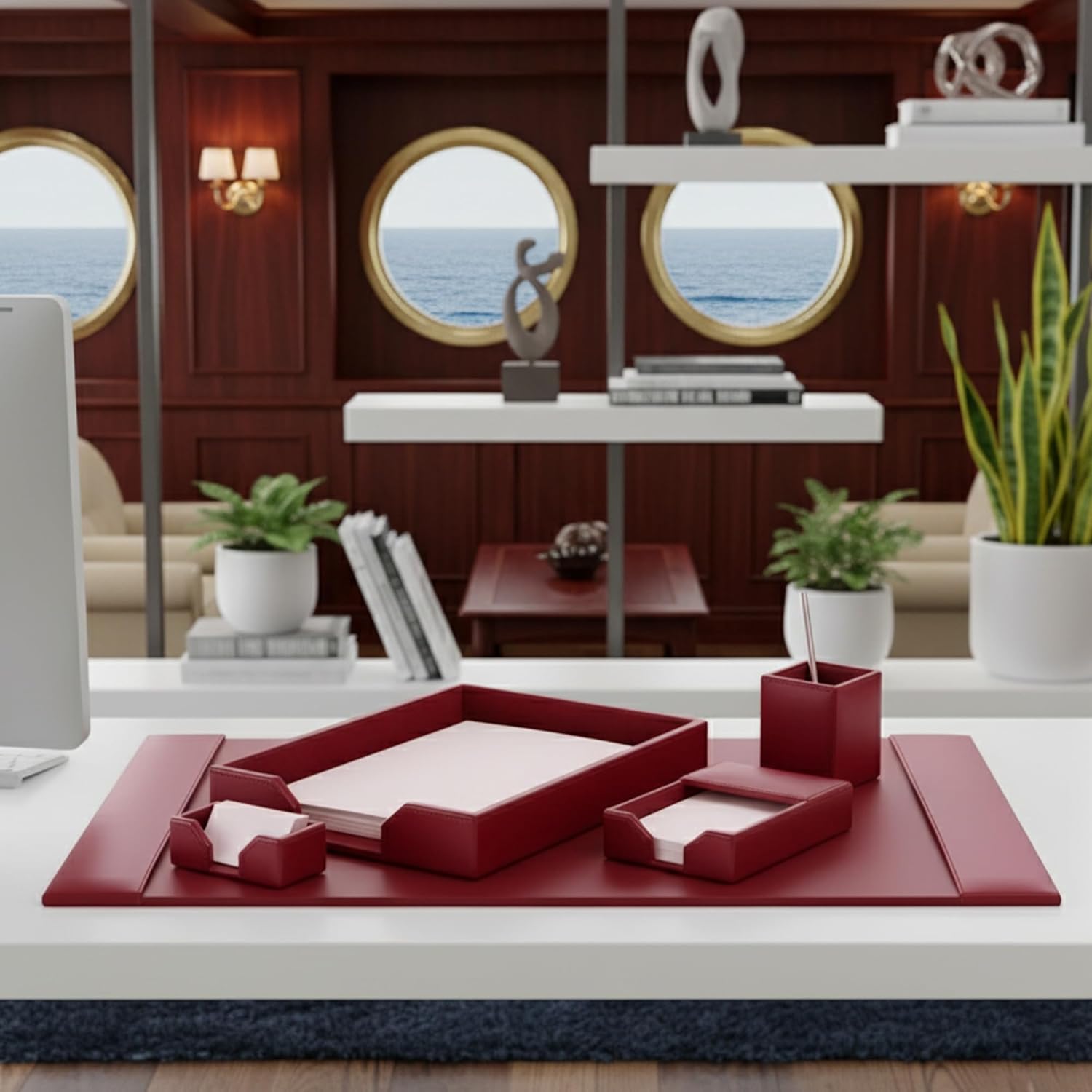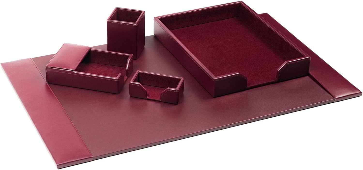 DACASSO Bonded Leather Desk Set - Luxury Leather Desk Pad & Desk Organization Essentials (Burgundy, 5 Piece)