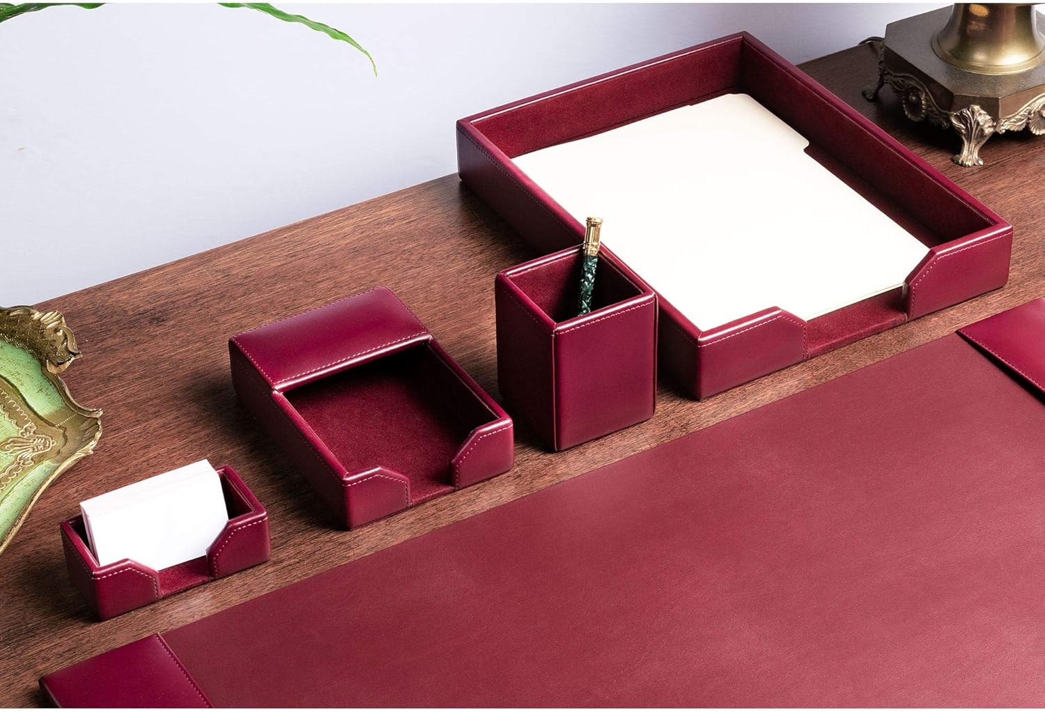 - LUXURY WITHOUT THE PRICETAG: All components of this set are made with beautiful bonded leather, allowing you the elegance of a leather office desk set without breaking the bank. From the soft, supple surface to the fine stitching and precise edges, each handcrafted piece is created with the utmost care and attention to detail.