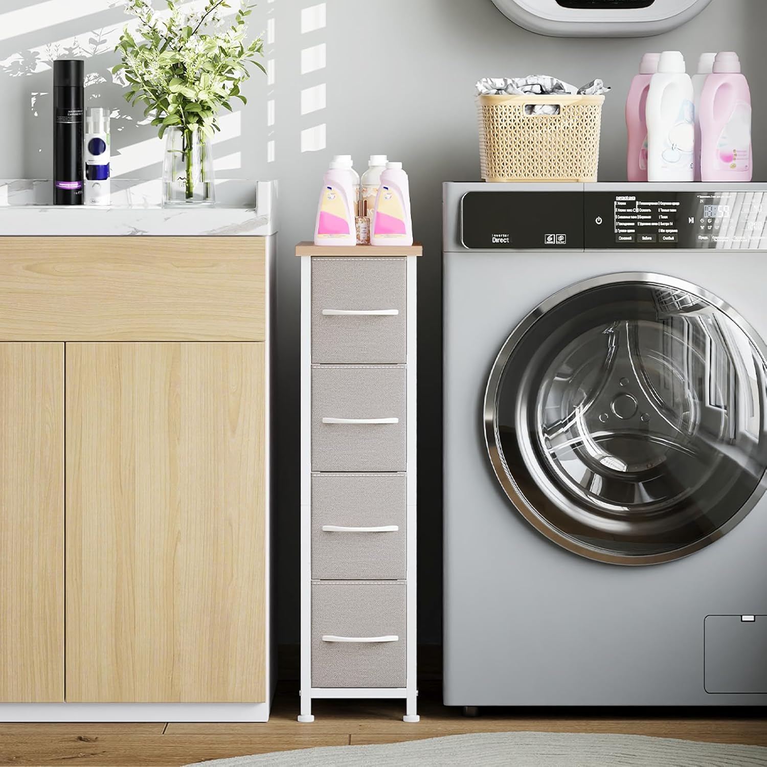 Somdot Narrow Dresser with 4 Drawers, Slim Storage Organizer Chest of Drawers with Removable Fabric Drawers for Small Spaces Bathroom Closet Bedroom Laundry, Ash Grey