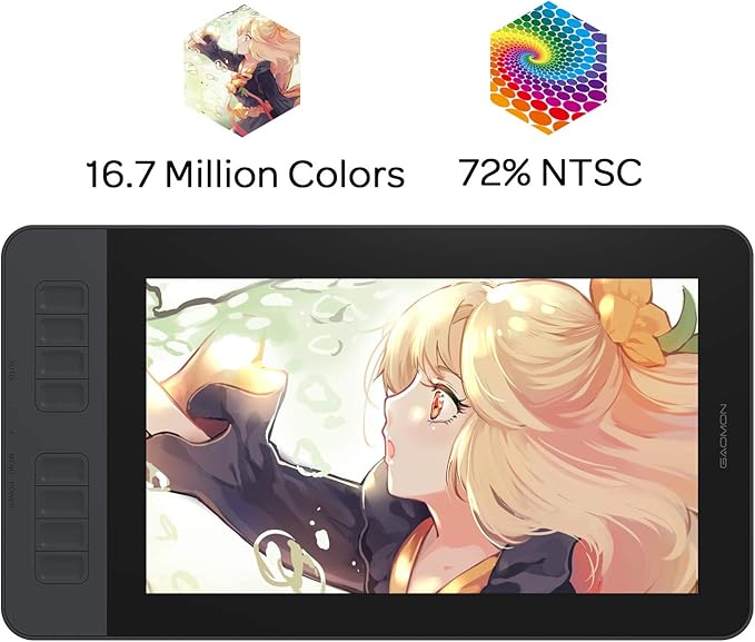 - [Vivid Color Perfomance]: A combination of 72% NTSC (100% SRGB) color gamut and 16.7 million display colors enables to present your drawings in a more lifelike way with smoother color gradation on this drawing tablet for pc.