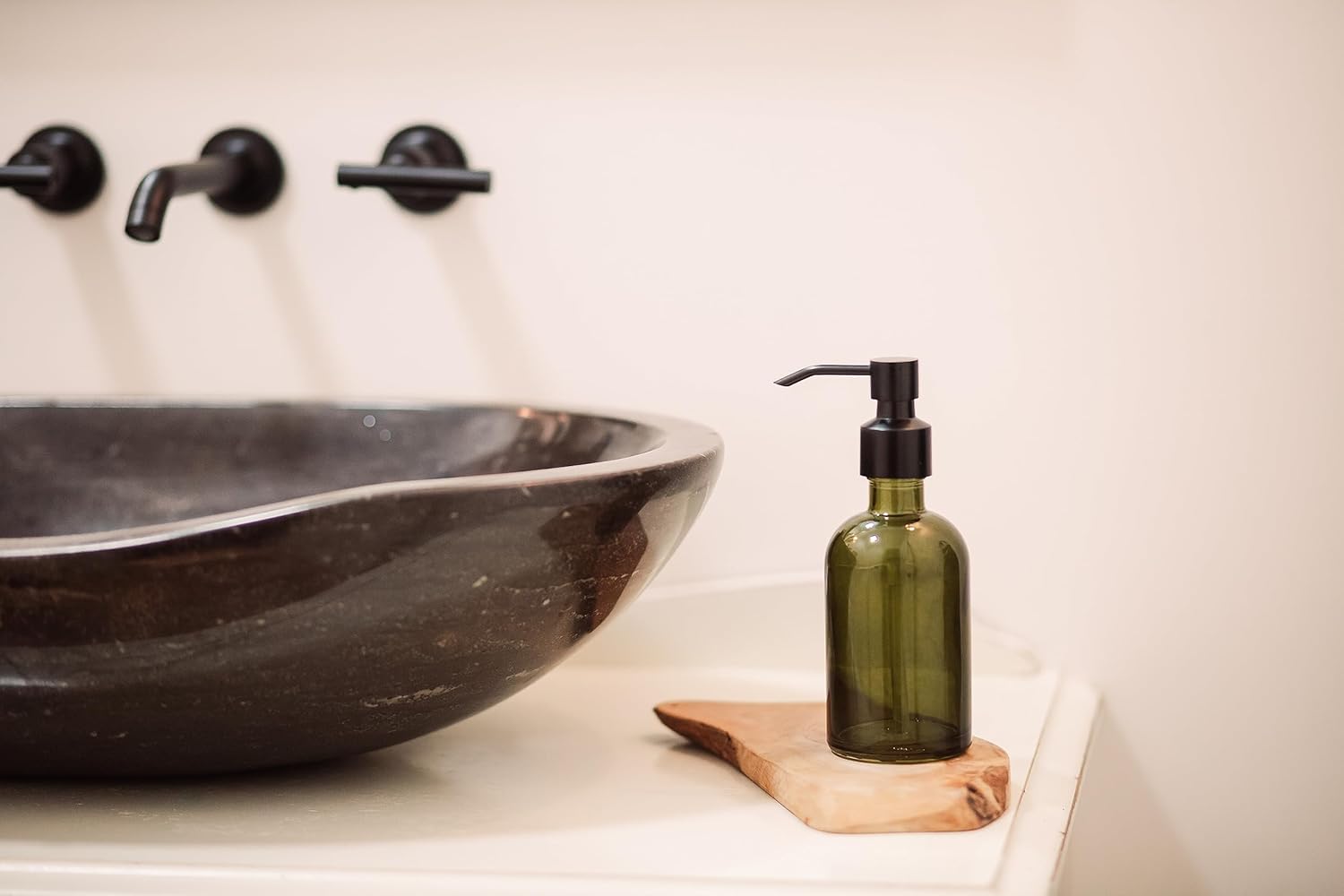 Rail19 Forest Green Glass Lotion & Soap Dispenser with Metal Pump, 8oz (Cali Black)