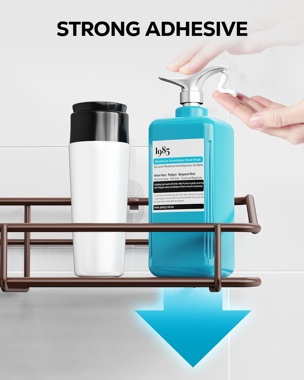 Nieifi Shower Caddy Shelf Storage Rack Adhesive Without Drilling Stainless Steel with Hooks for Washroom, Lavatory, Restroom, Toilet, Bathroom, Kitchen - 2 Pack Bronze