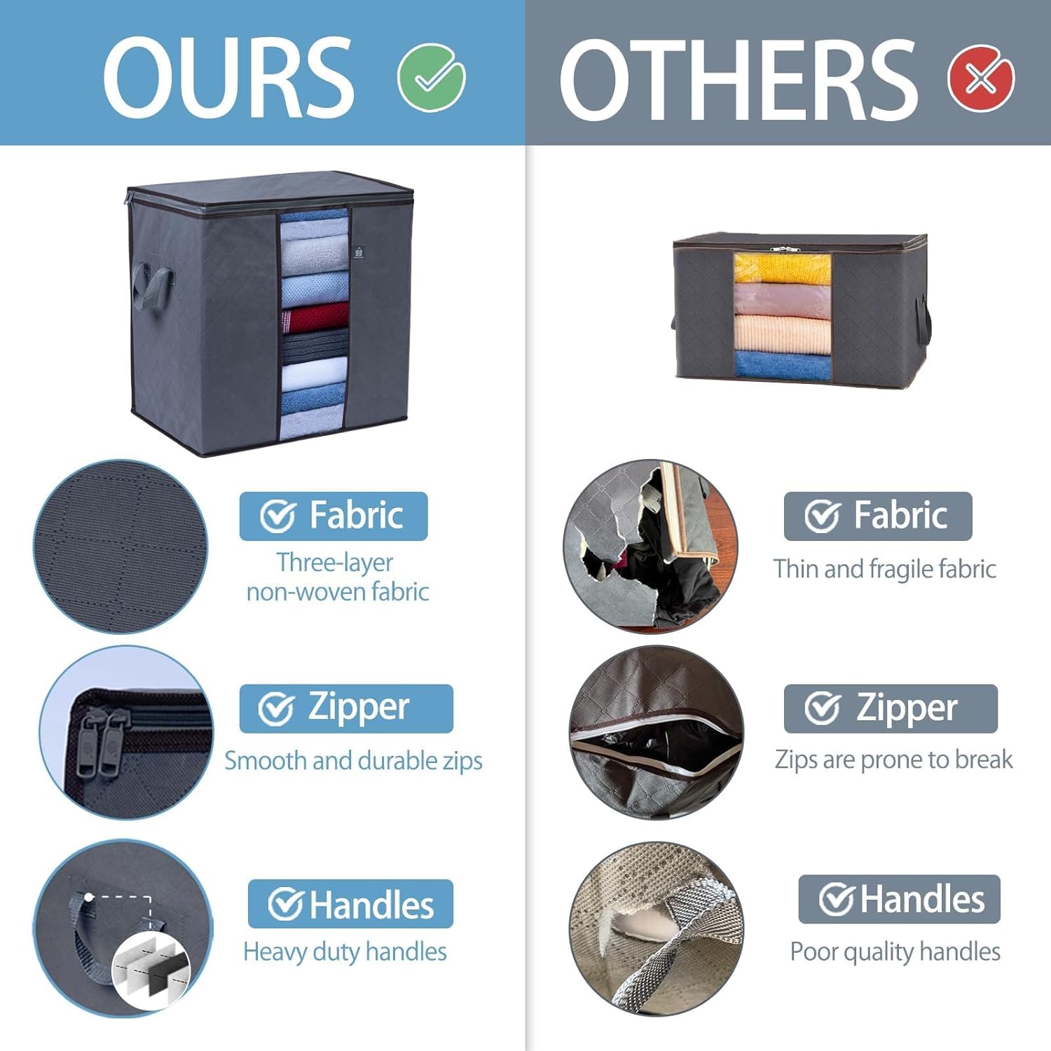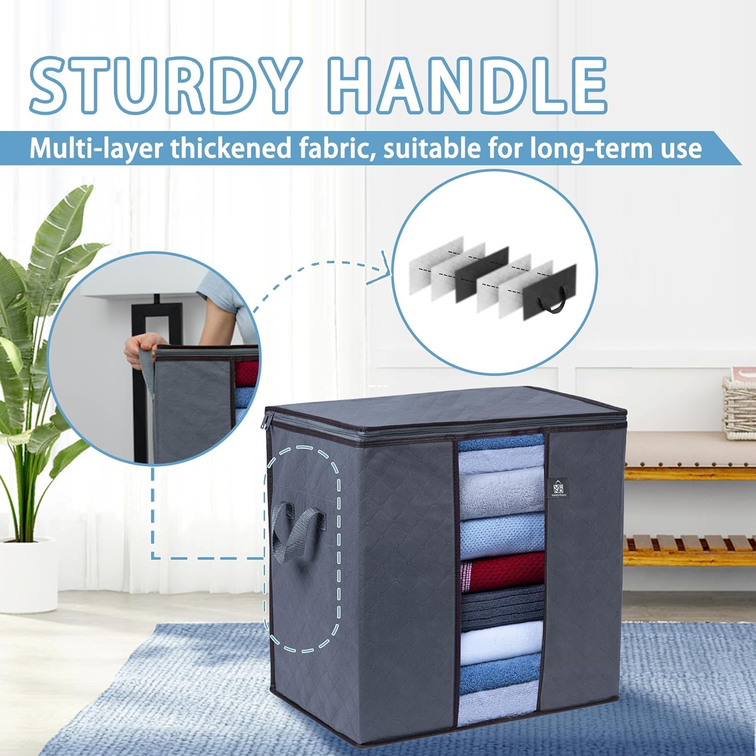 - EXTRA-LARGE SIZE: 19.7” W x 19.7” H x 14.2” D. 24 Gallons or 90 Liters of storage capacity. Large capacity to fit various items such as clothes, towels, linens, sheets, blankets, throws, quilts, comforters, bedding, pillows, curtains, shoes, plushies, etc. Multifunctional and ideal for storing seasonal clothing, transporting your bedding or towels during moves, organizing all your belongings, and freeing up extra closet and drawer space. Conveniently store under or on top of your closet rack.