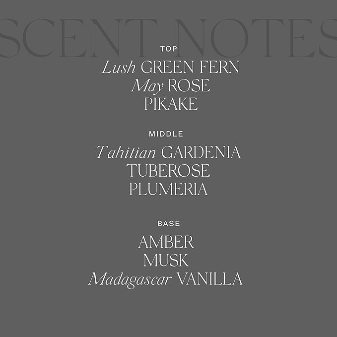 - Transportive Tropical Fragrance: Inspired by the Hawaiian Lei, tuberose, gardenia and ginger flower lay the foundation, while notes of jasmine, warm musk and green oakmoss complete this intoxicating scent