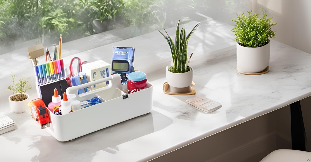 - PORTABLE: Feature easy-carry with round smooth handle to make it simple to transport goods from shelf to cabinet or desktop; Just grab and go; The perfect storage and organizing solution for modern living spaces; Open tops and divided compartments make it easy to see what is inside and quickly grab what you need; Use these convenient storage bins to keep office desk items all in one place; Great for children's crafting items and school supplies too; Perfect for home or commercial workspace