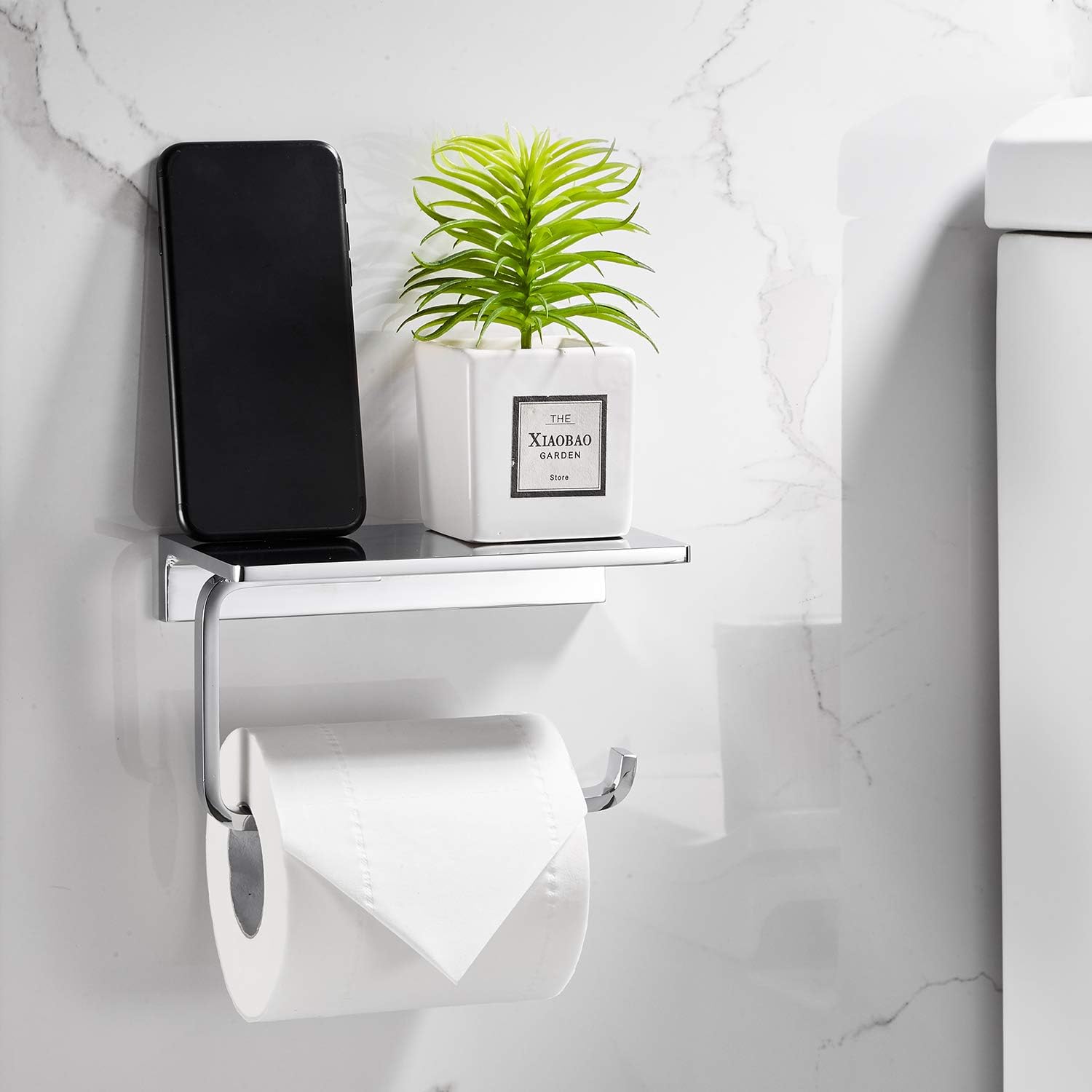 - Storage shelf to hold various items such as cell phone, book, cup or other small items to free your hands to do more interesting things while you are in bathroom.