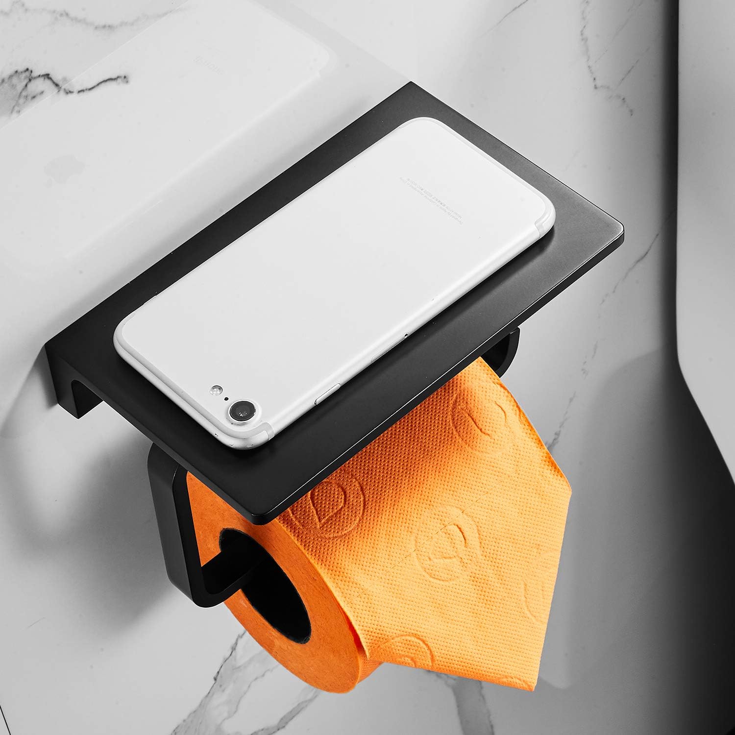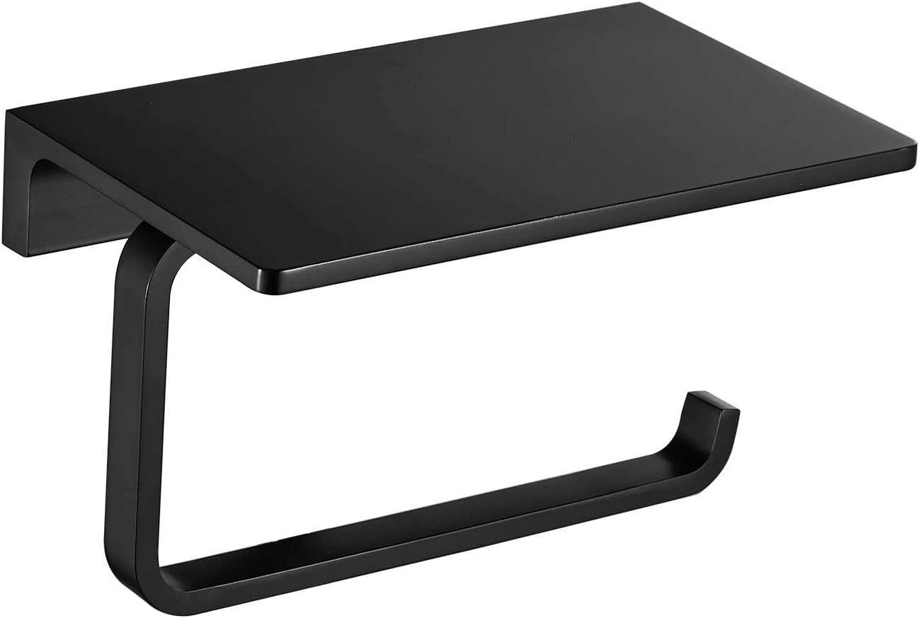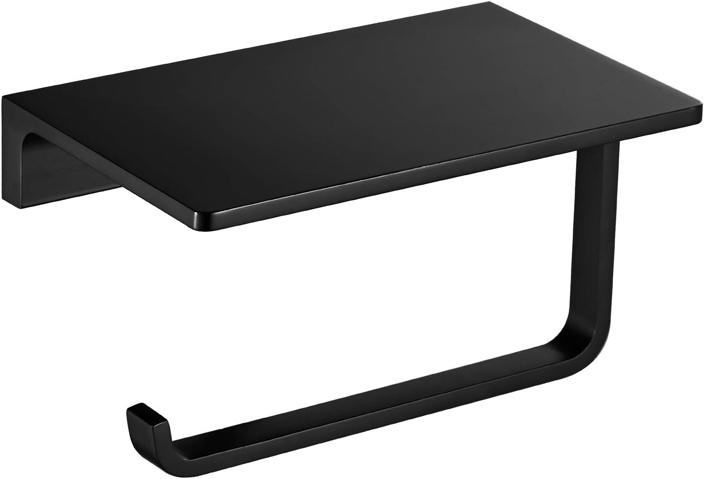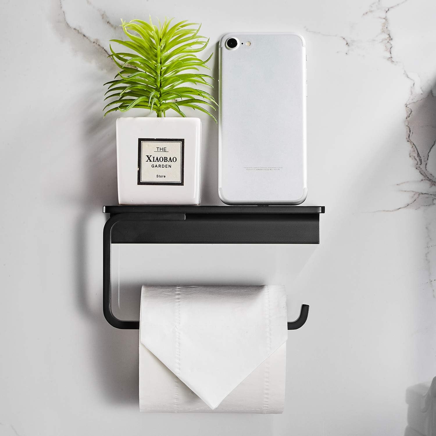 Toilet Paper Holder for Bathroom Solid Brass and Superior Hotel Style Tissue Roll Holder with Cell Phone Storage Matte Black Finish