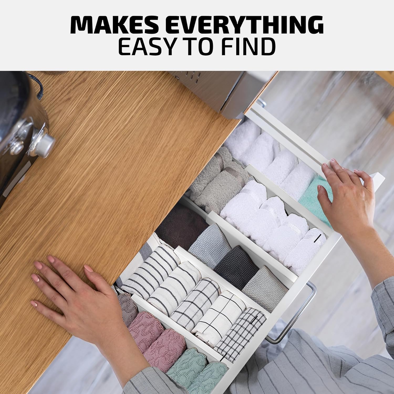 - ✅ MEASURE FOR PERFECT FIT: Ensure the size will work for your drawer by measuring your drawers before ordering. Our drawer dividers adjust from 16" to 22" and stand 2.6" high, making them perfect for both shallow and deep drawers. Available in four stylish colors—natural, white, grey, and black—they blend seamlessly into any décor.