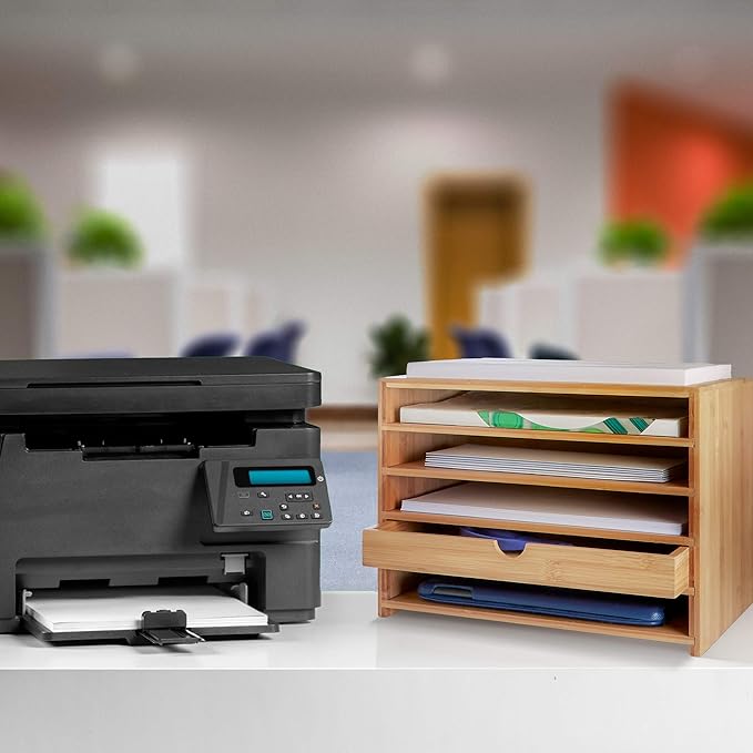 - [STYLISH ORGANIZATION]: : A beautiful and durable bamboo paper organizer. swiftly declutter your desk, kitchen and home office. Sturdy and stylish.
