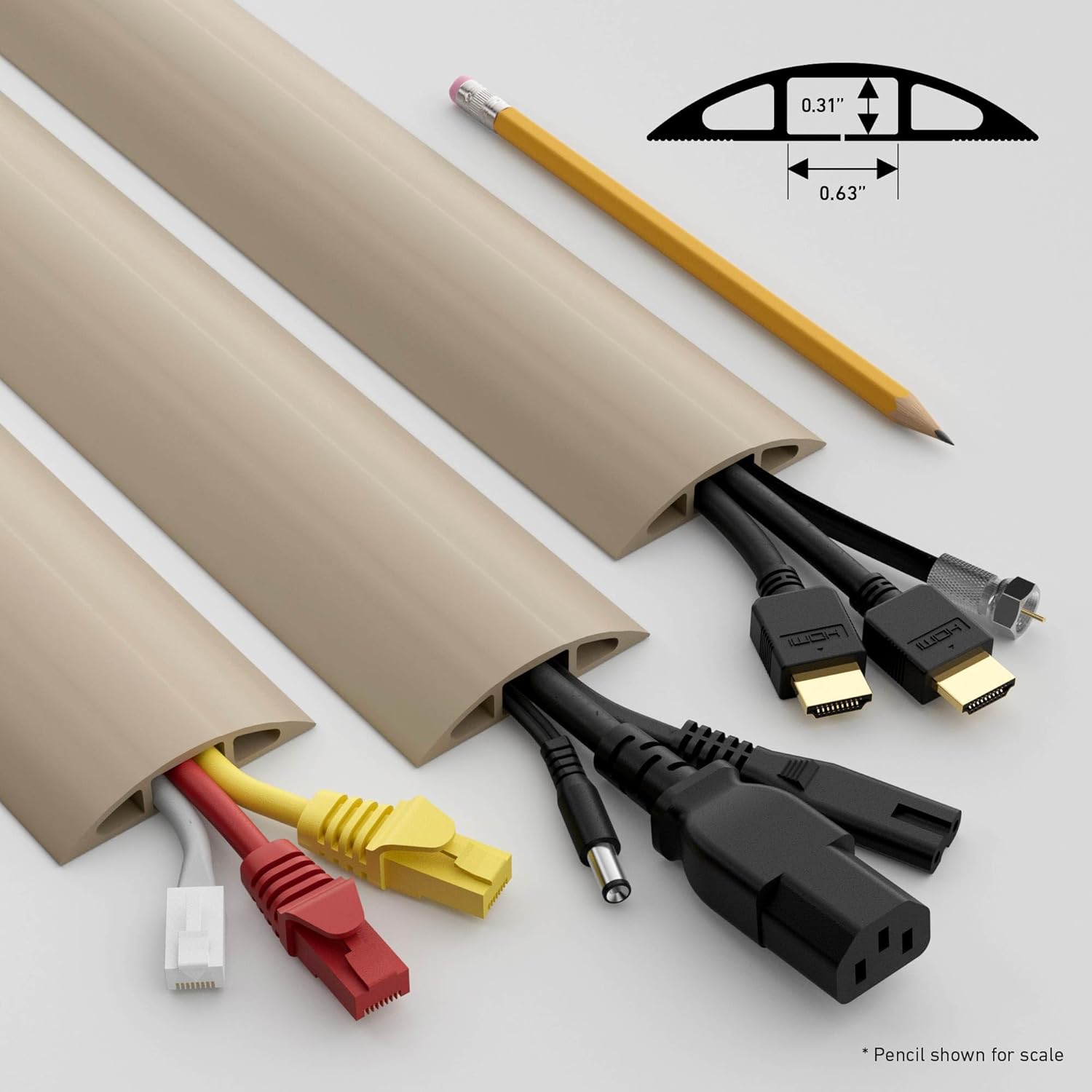 D-Line 6ft Floor Cord Cover, Cable Protector, Hide Extension Cords, Protect Cords, Prevent Cable Trips, Heavy Duty Cord Hider - Cable Cavity = 0.63" (W) x 0.31" (H) - Beige