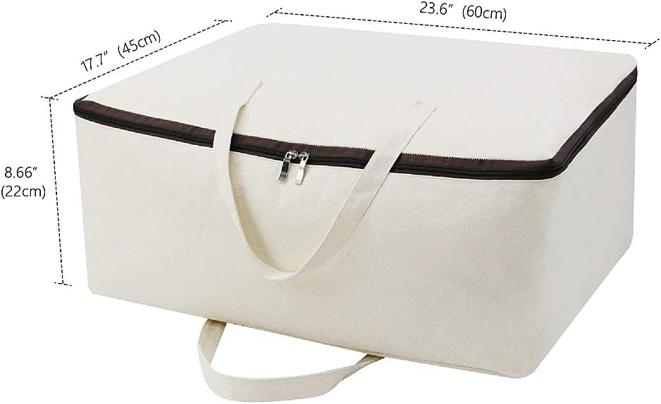 2-Pack Heavy Duty Canvas Cotton Storage Bags for King/Queen Duvets | Soft & Breathable | 3-Zip Opening, Dust Proof Blanket Organizer Bag | 23.6 * 8.7 * 17.7inches