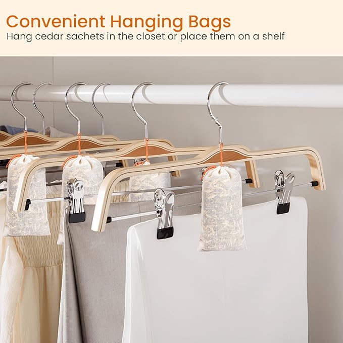 - Complete Set: Includes 5 cedar rings, 5 cedar sachets, and 1 sandpaper for easy maintenance