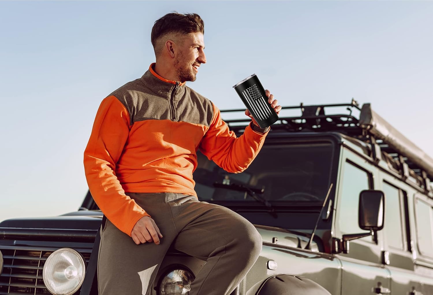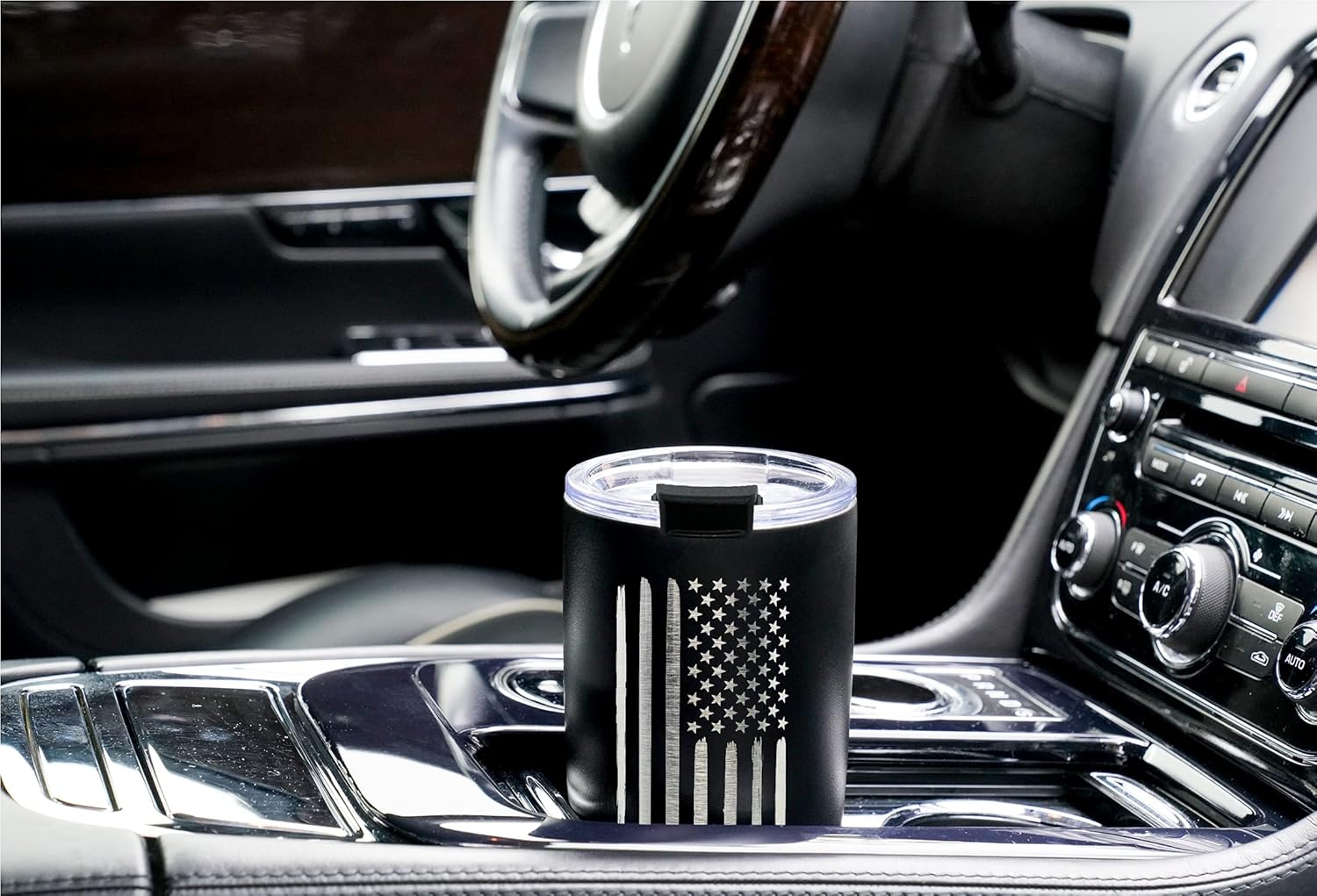 - {LASER ENGRAVED} - Engraved with the American flag, our travel coffee mug spill proof ensures a bold and crisp design that lasts. You'll never have to worry about coffee stains again.
